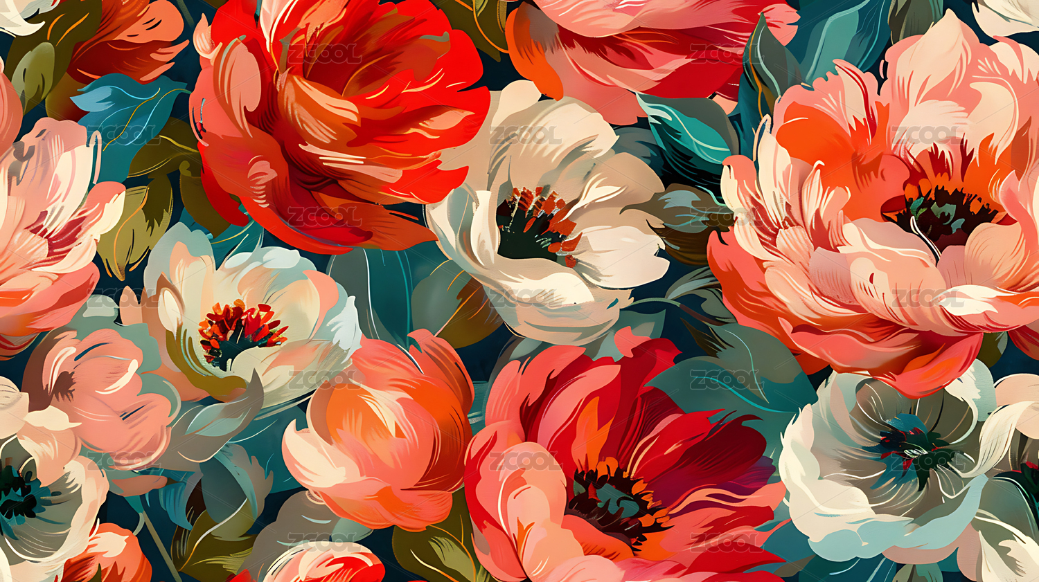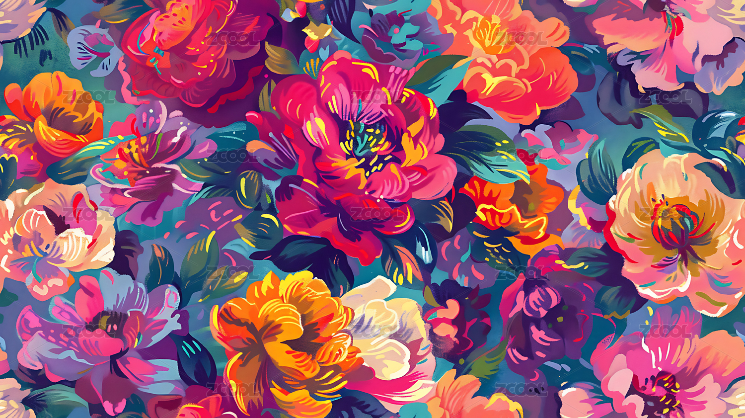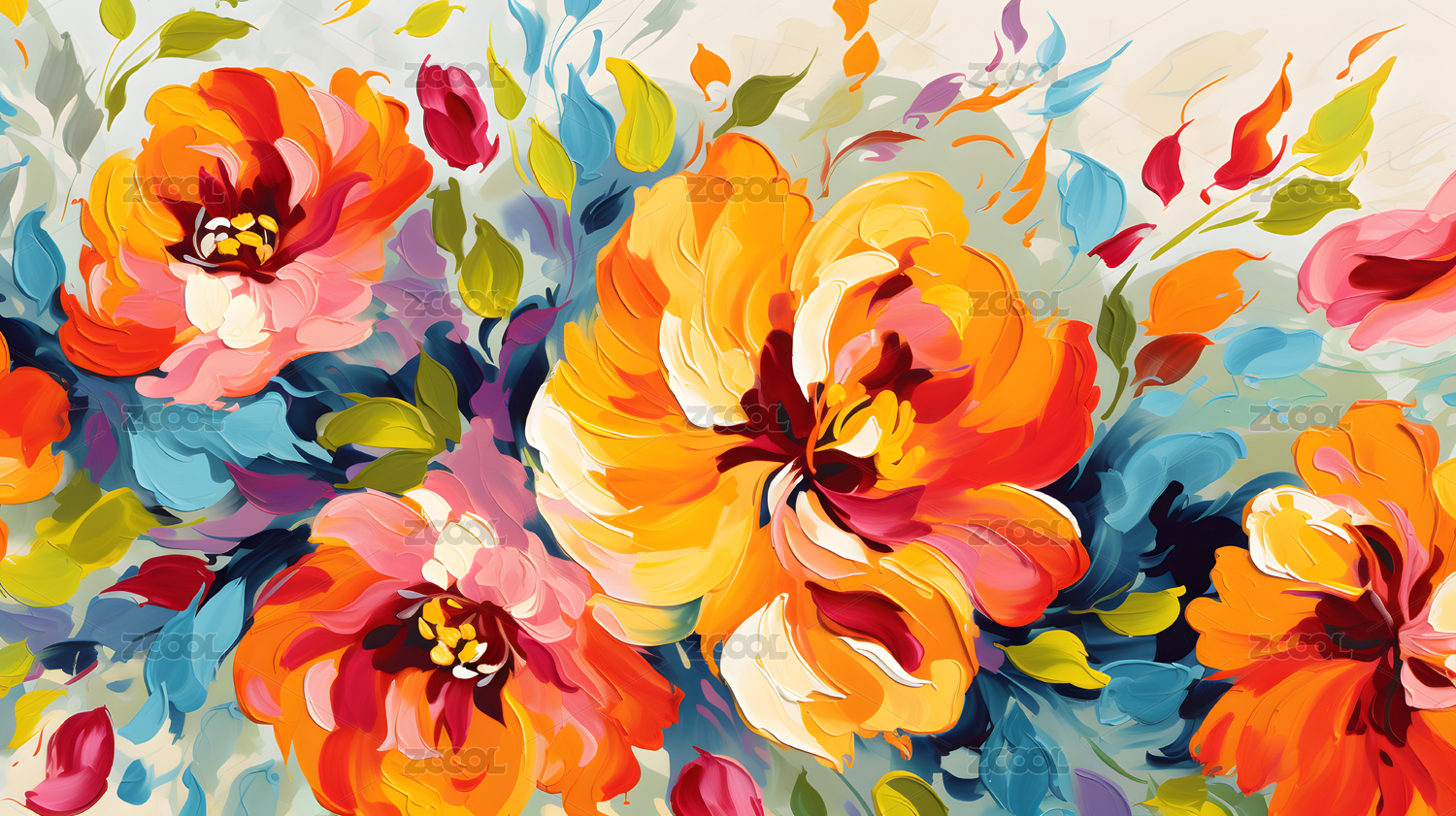 鲜艳的色彩抽象油画花朵艺术感装饰背景