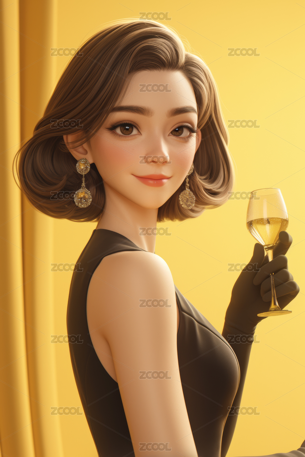 游戏风格卡通人物穿正装连衣裙的微胖女子