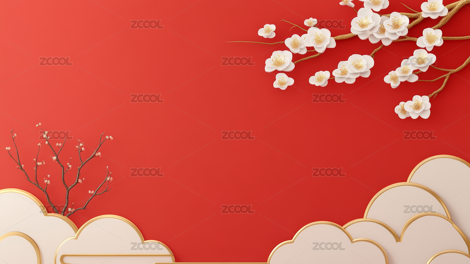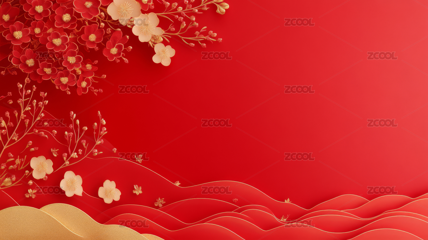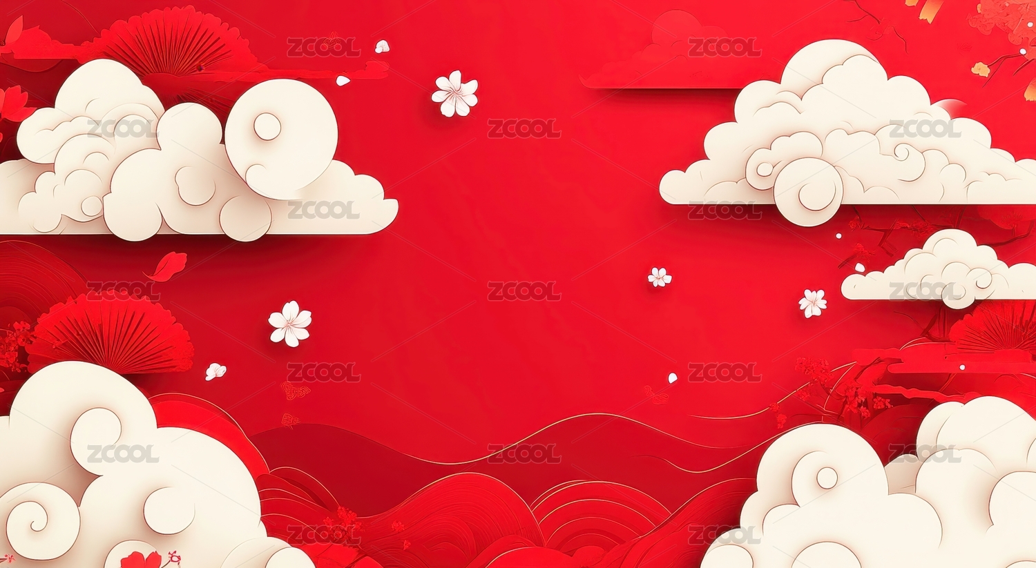 国风,国潮风,背景,花,春节,祥云,设计,插画,红色,新年