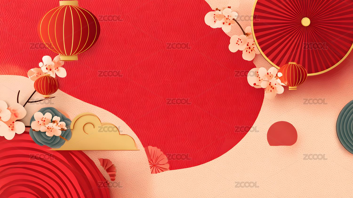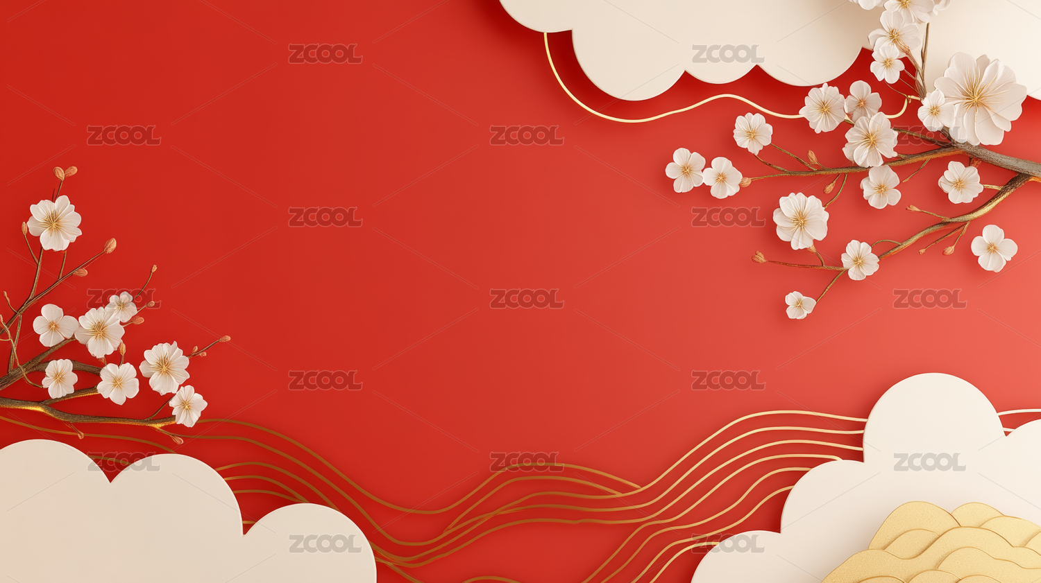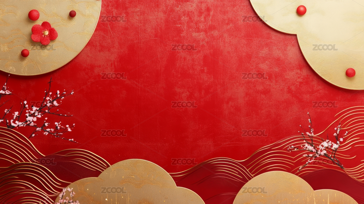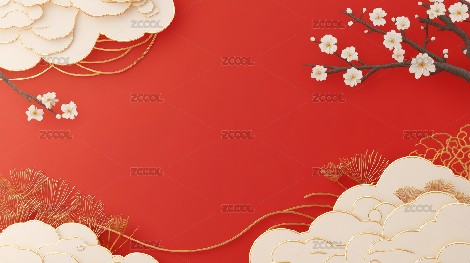 国风,国潮风,背景,花,春节,祥云,设计,插画,红色,新年