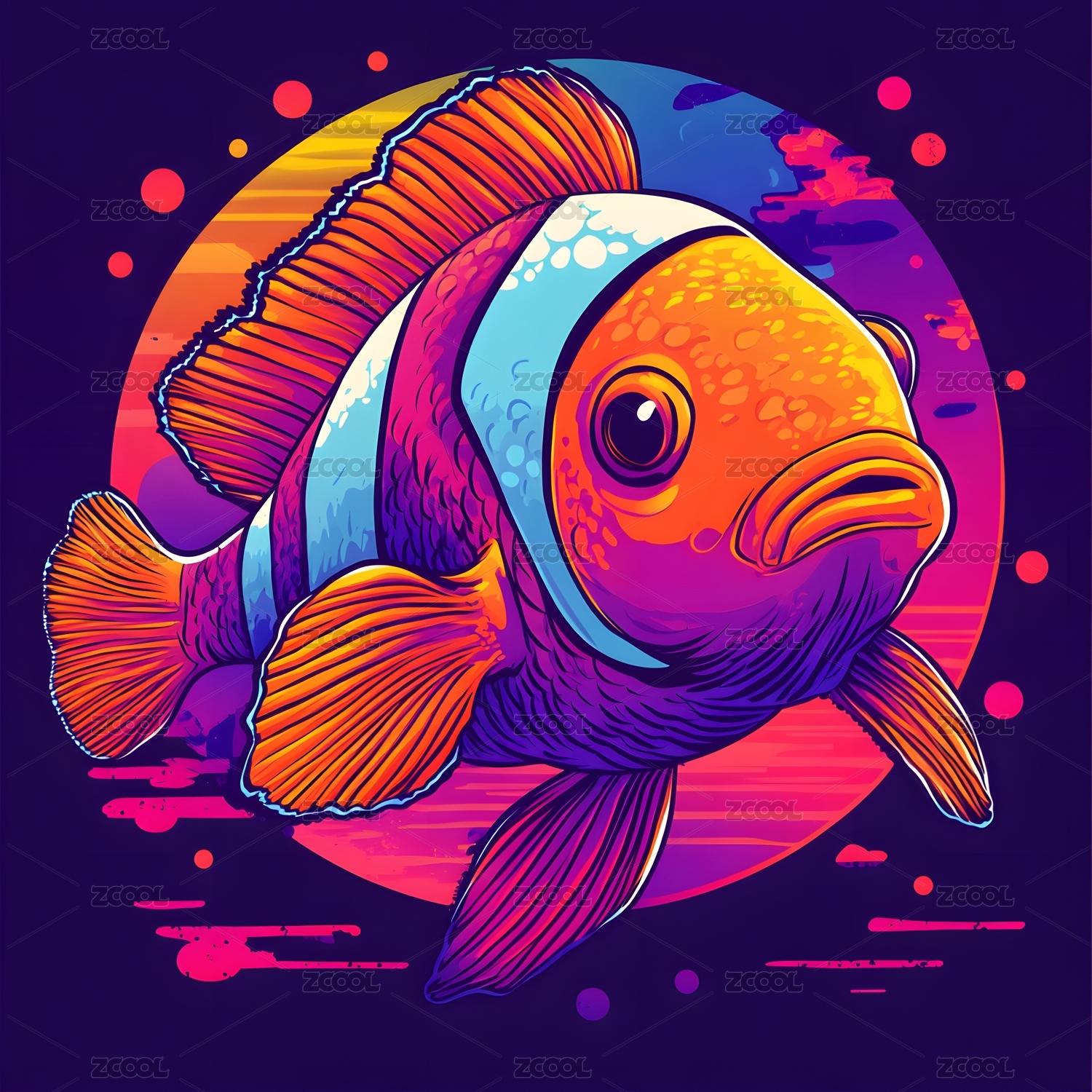 夜幕下珊瑚丛中可爱的卡通小丑鱼