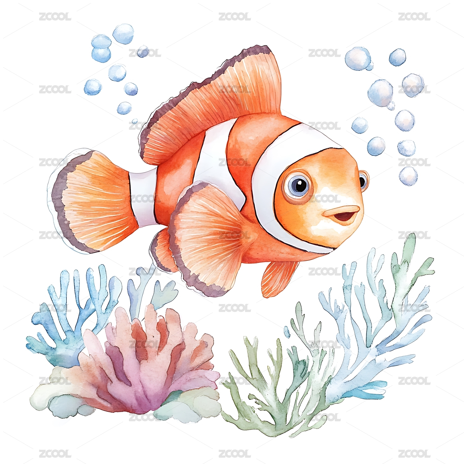 鱼类,深海,卡通,石斑鱼,小丑鱼,海草,水草,海水,海蜇,水母