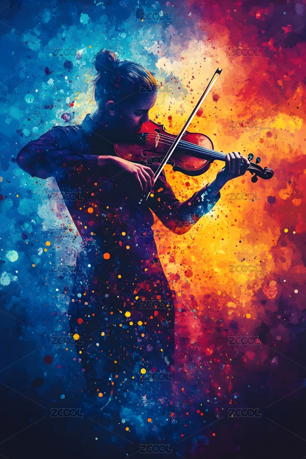 卡通,女孩,小提琴,音乐家,连衣裙,演奏,优雅,可爱,灵动,女生