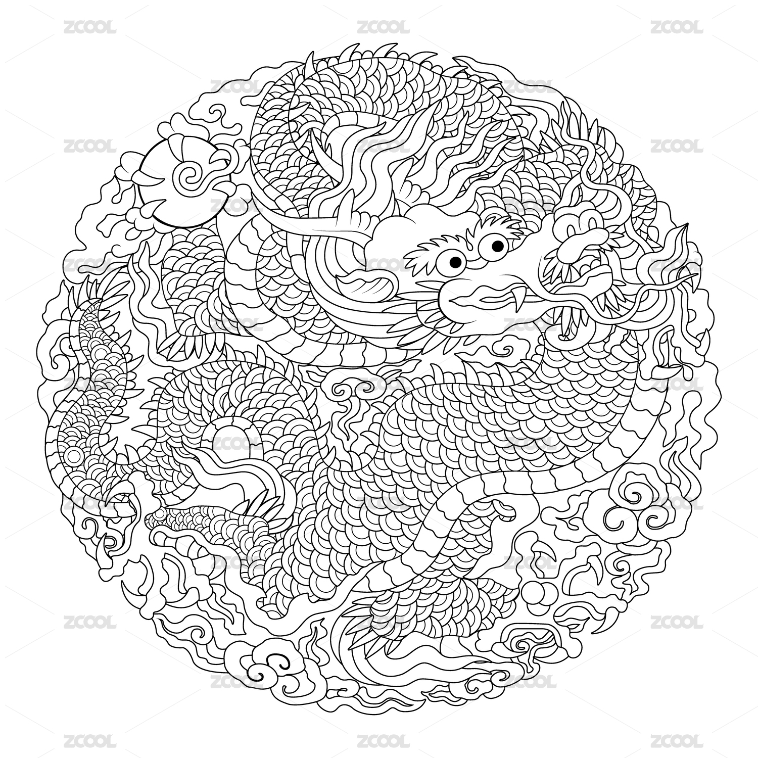 中国传统民族图案祥禽瑞兽东方神兽纹样青龙