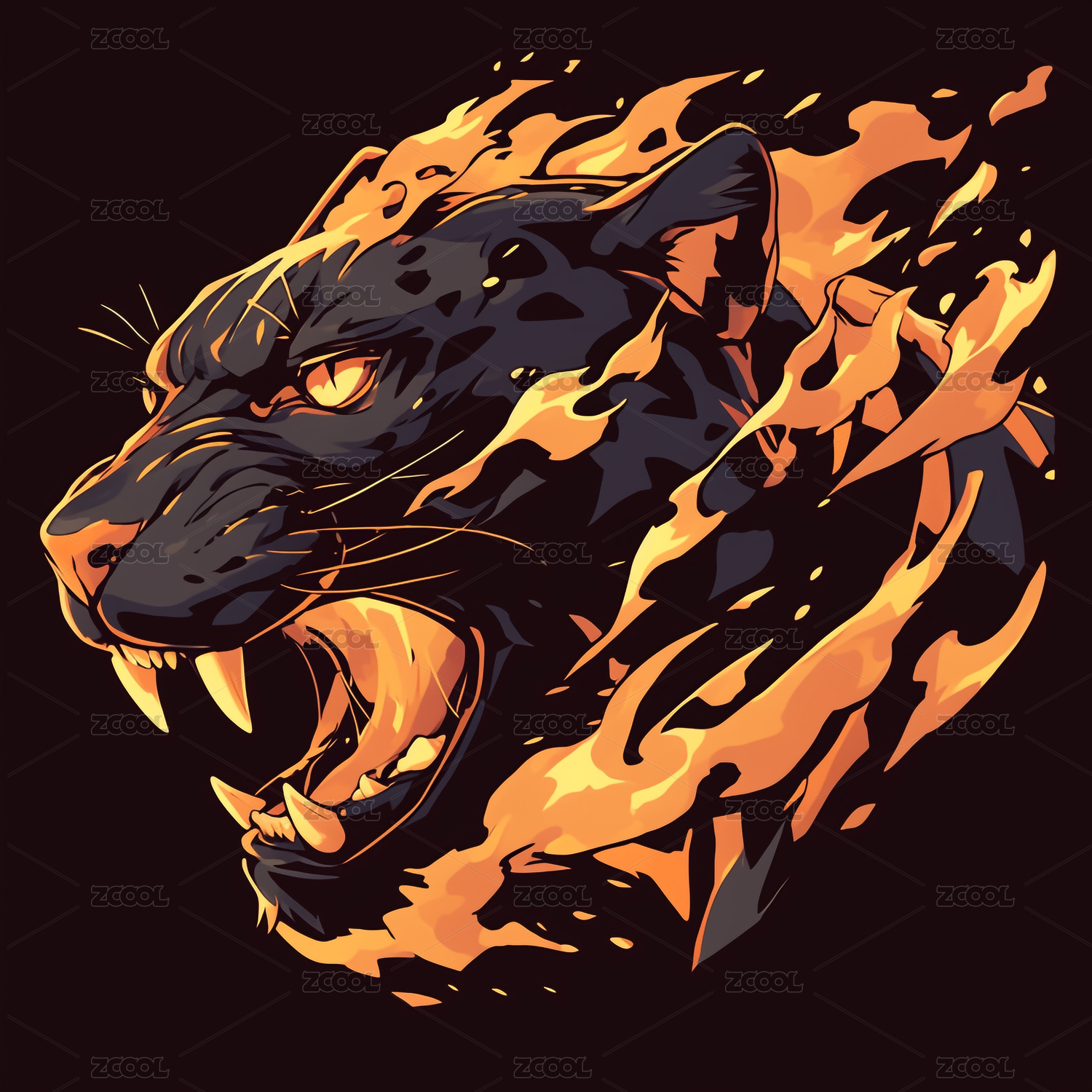 复古美式版画风格张嘴怒吼的黑熊头像装饰画