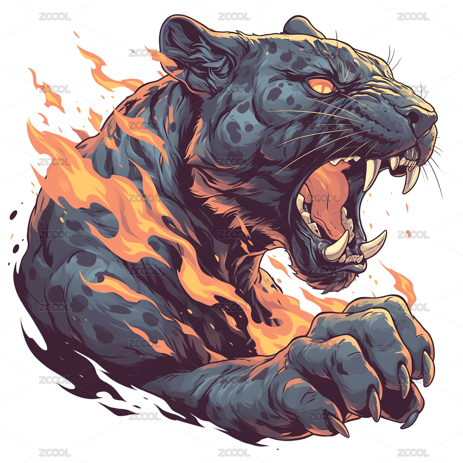 猫脸,猫头,愤怒,闪电,神秘,威严,插画,艺术,矢量,绘画