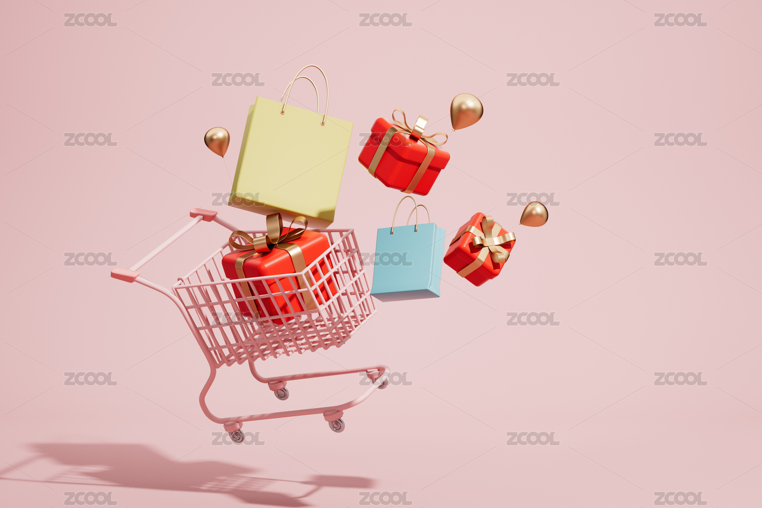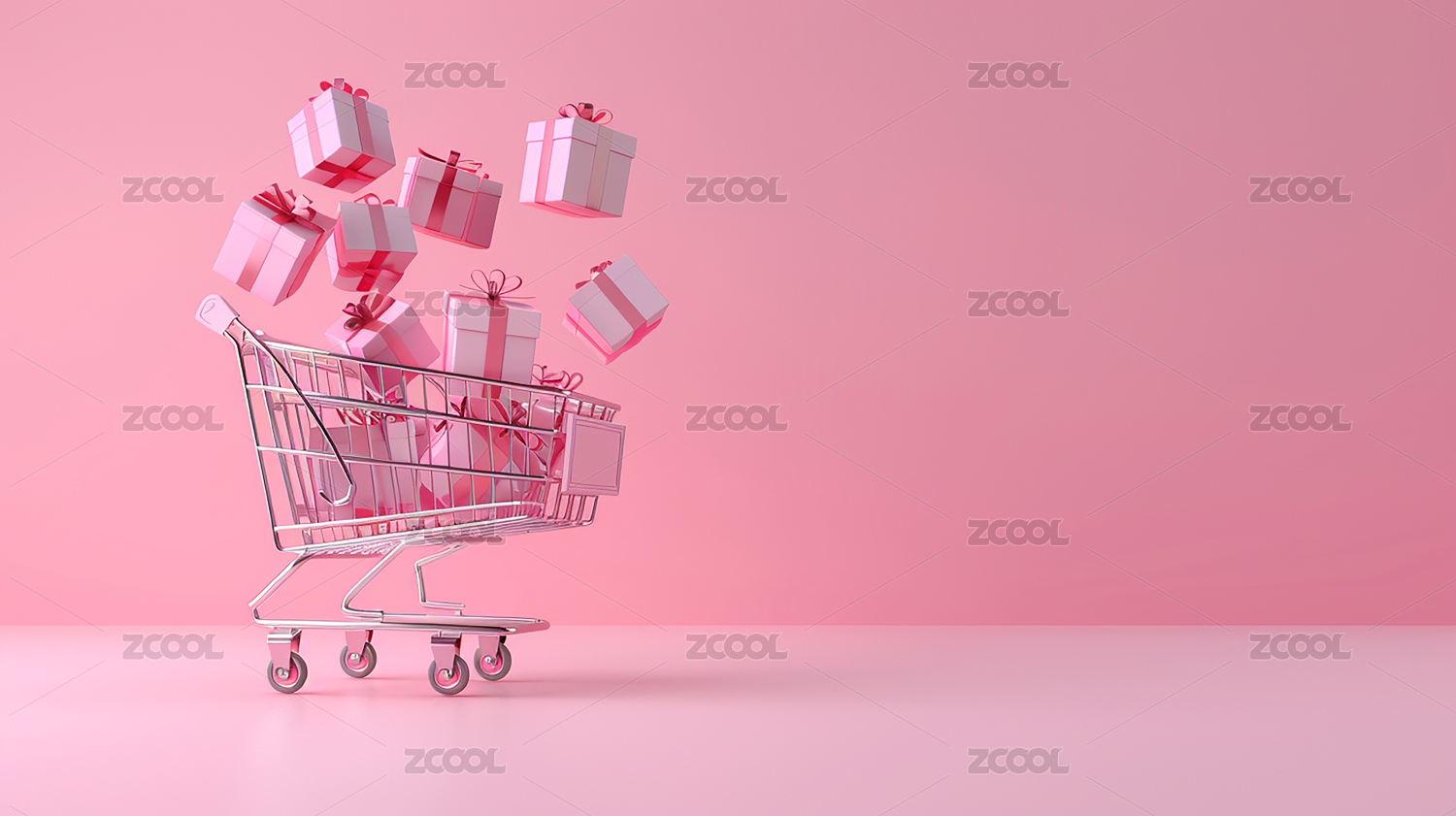 购物,电商,壁纸,背景,购物车,礼物,盒子,平台,粉色,场景