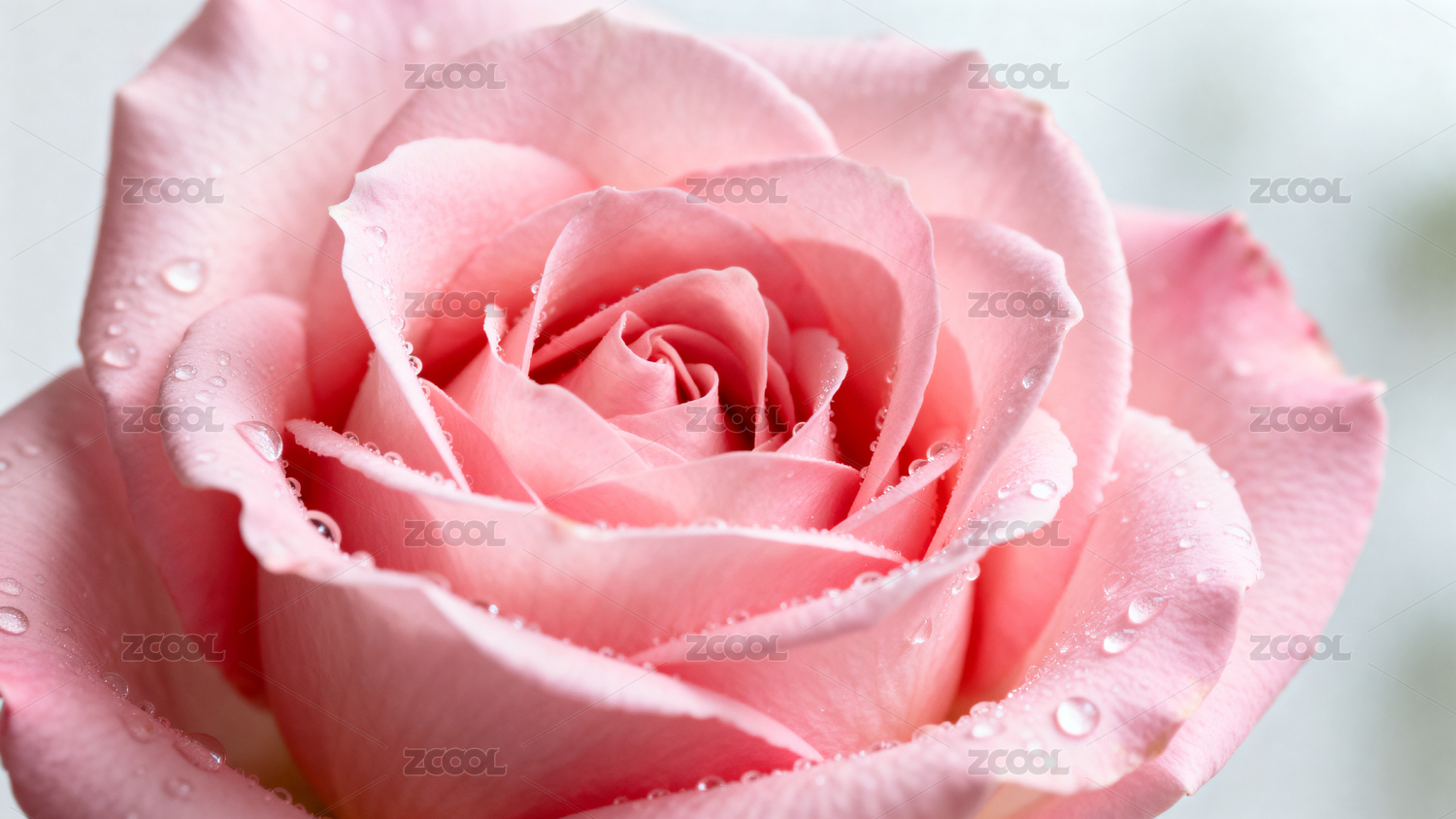 美丽的花卉粉色欧洲月季花瓣局部与露珠特写