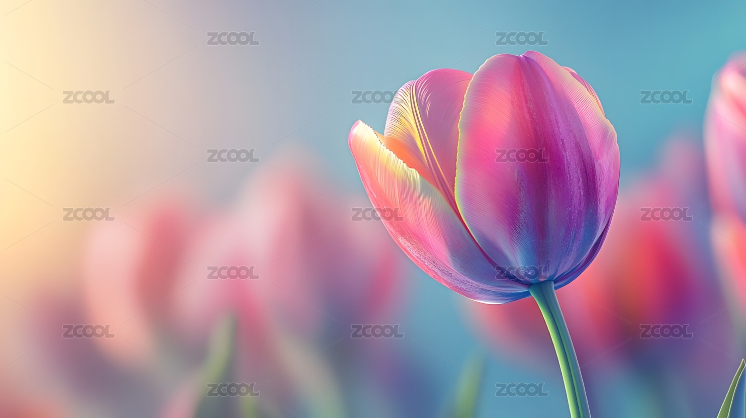 美丽的郁金香花束和散景背景,感恩节母亲节