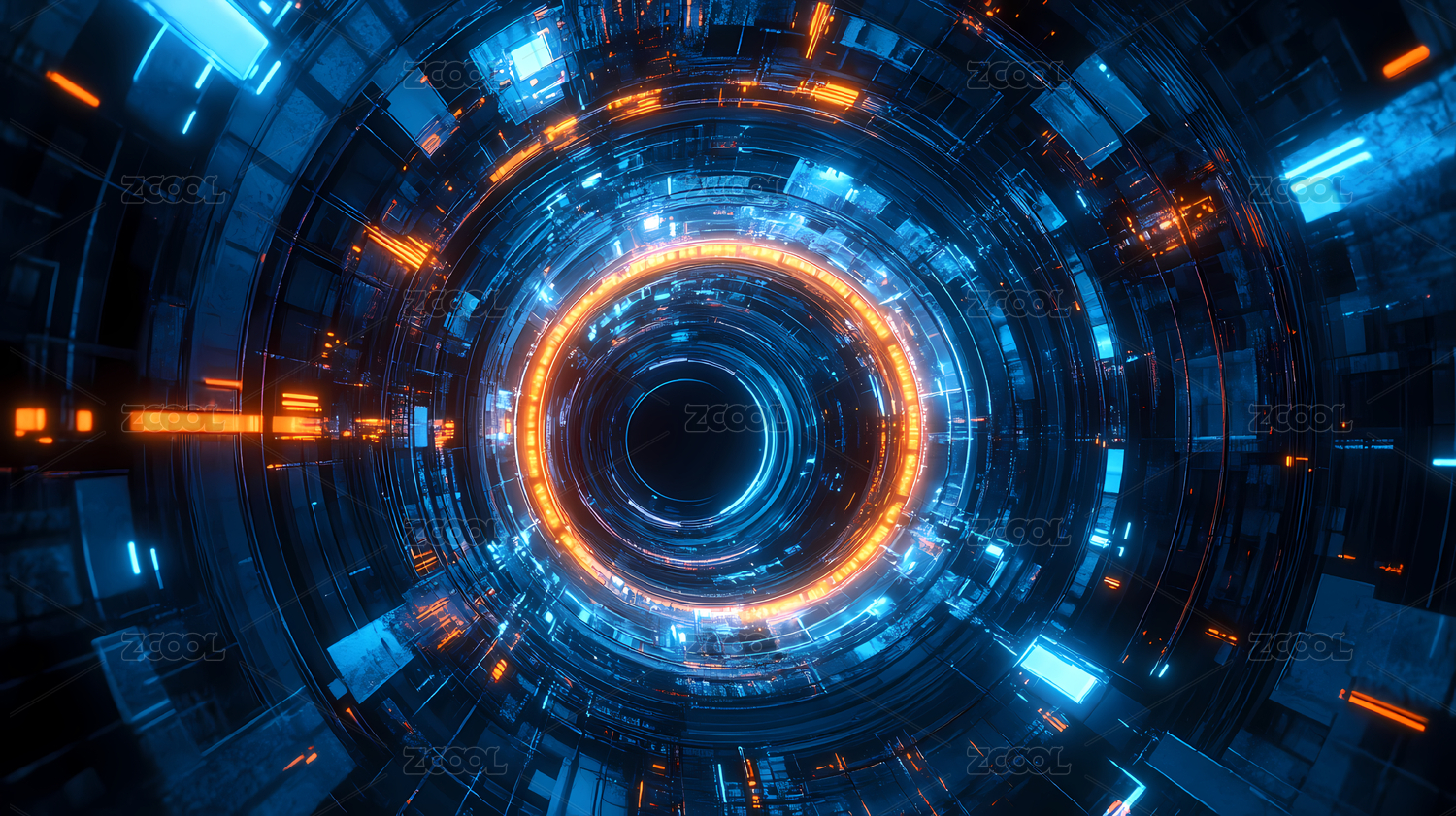 蓝橙色科幻圆形结构图