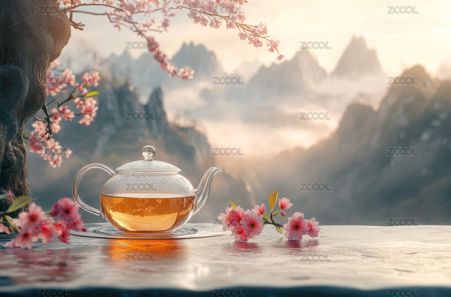 茶杯,茶壶,中式,中国风,复古,庭院,园林,窗框,窗户,秋天