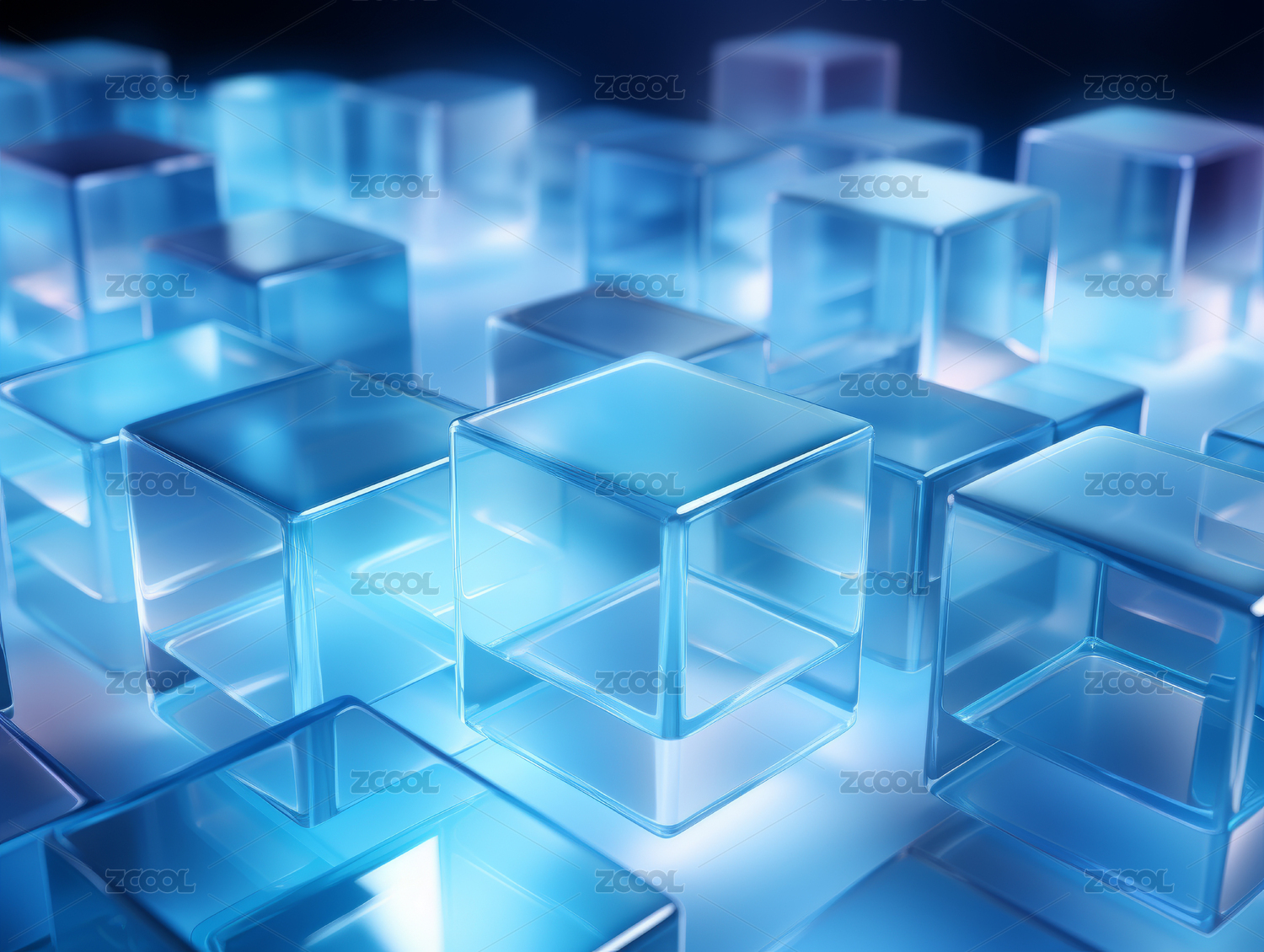 数码科技渐变蓝白色玻璃几何海报横版背景