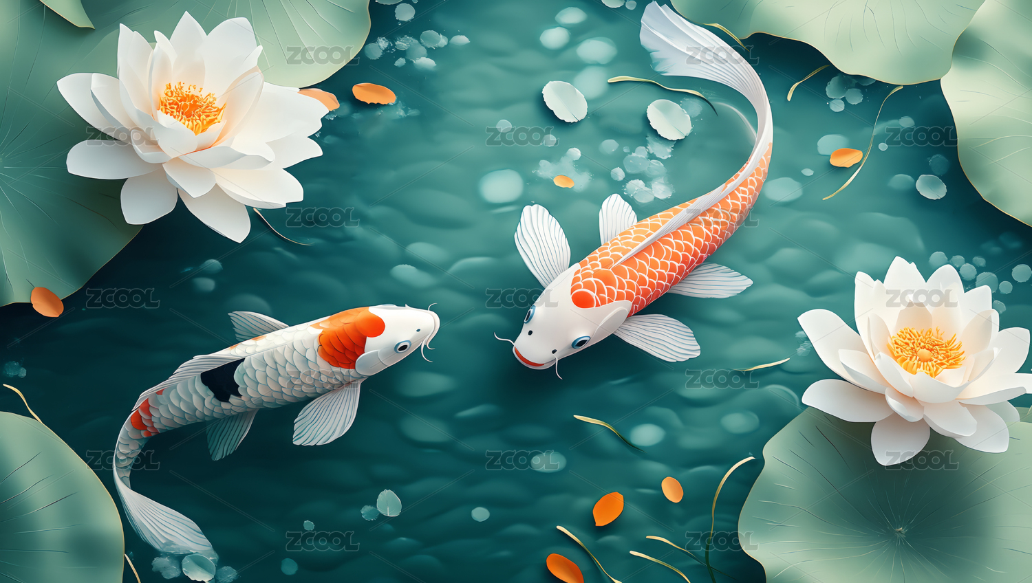 鲤鱼,锦鲤,中国风,金色,牡丹,花朵,吉祥,刺绣,池塘,传统
