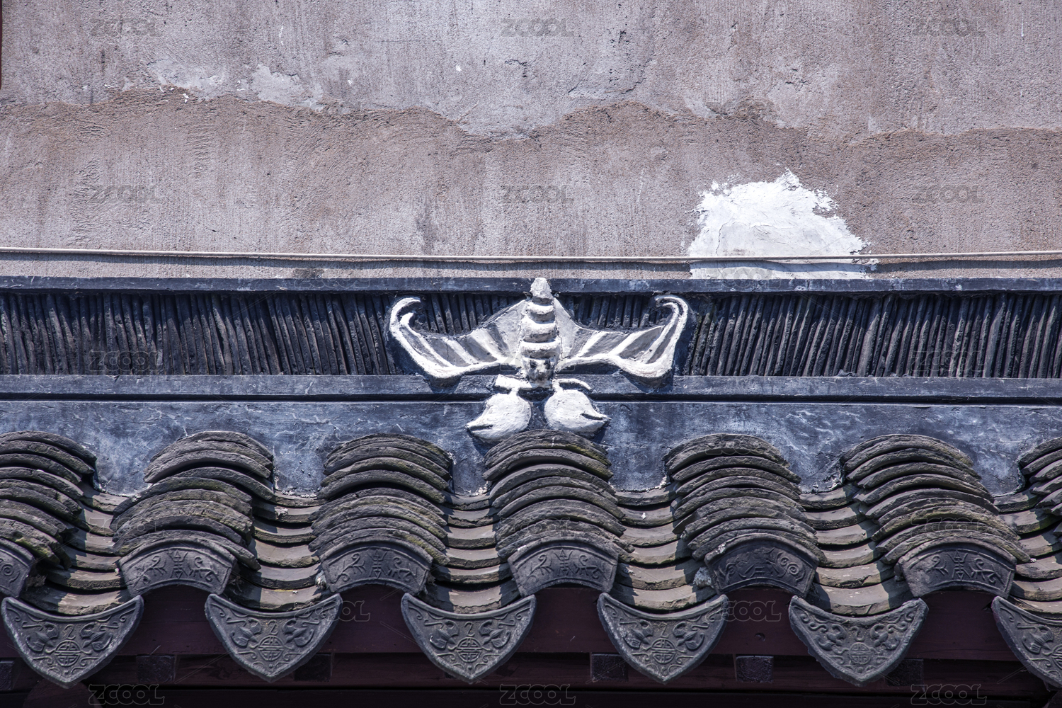 中国山西晋中灵石县王家大院屋顶龙首装饰