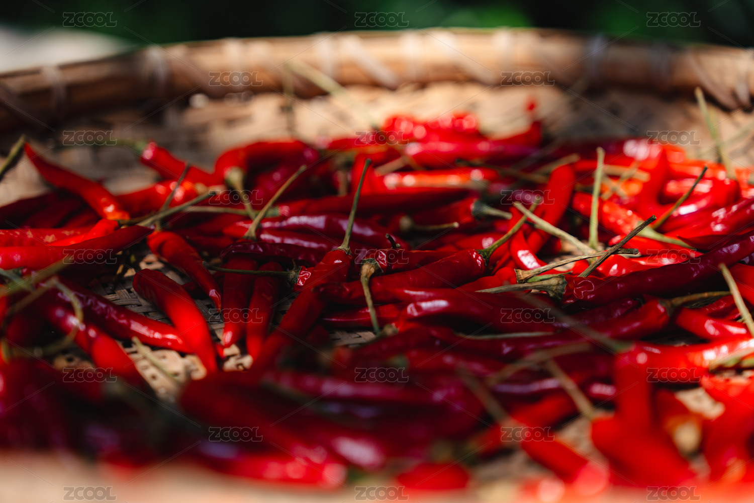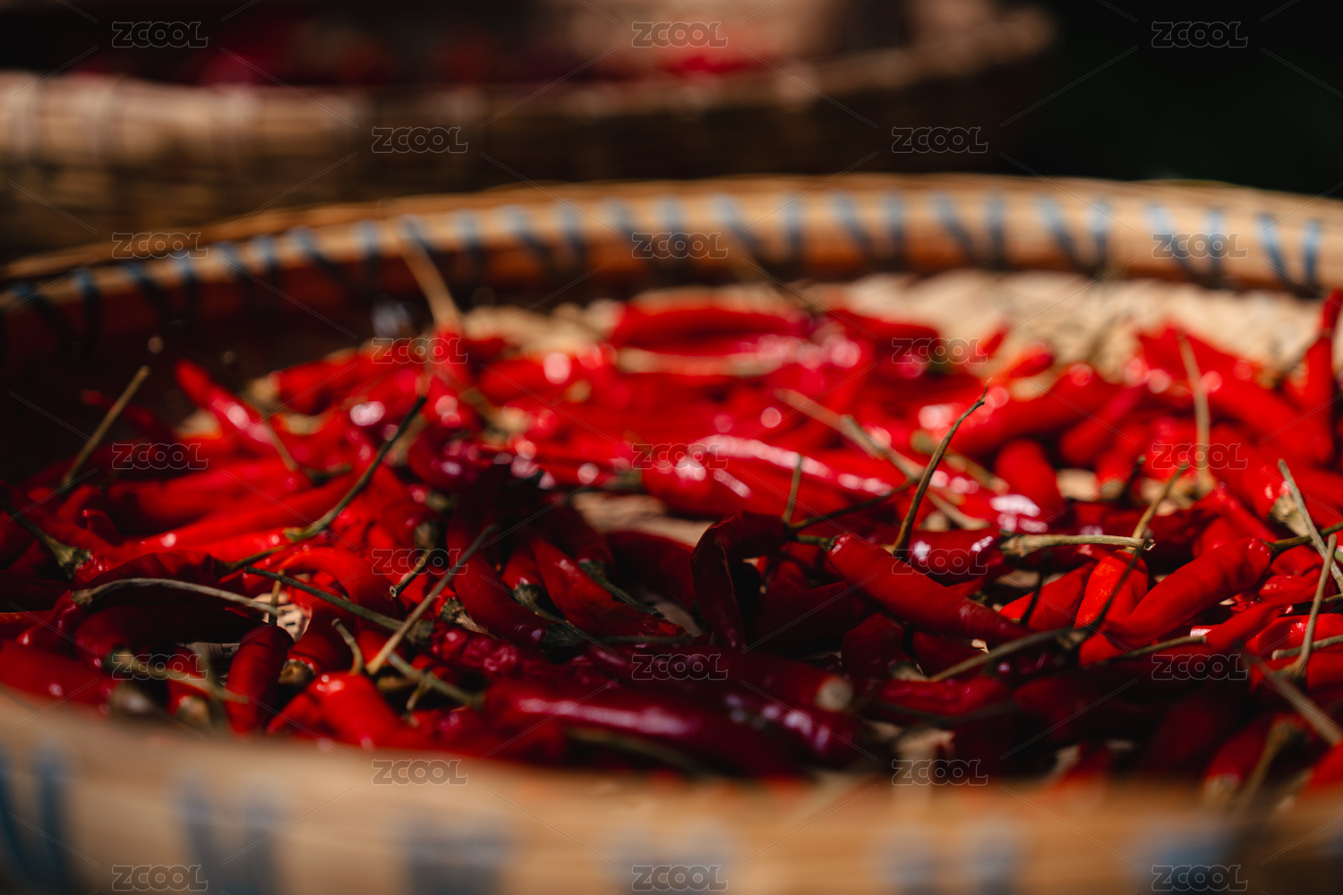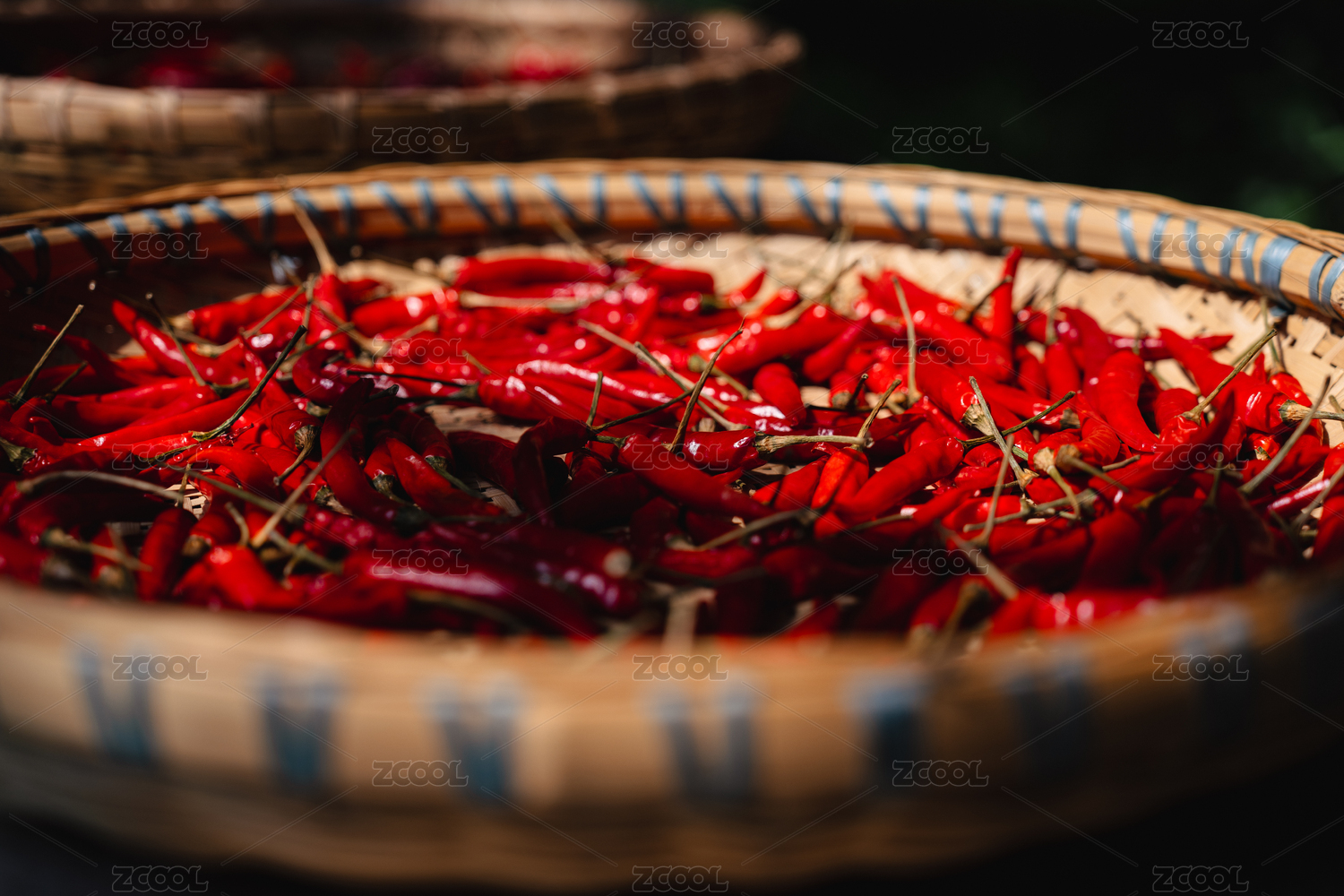 中国江西婺源篁岭景区里悬挂的辣椒串