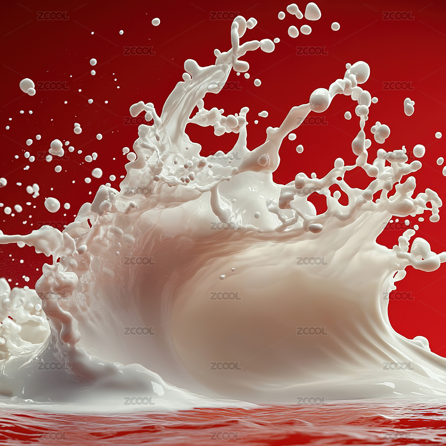 红色背景下的牛奶浆碰撞反弹视觉奇观