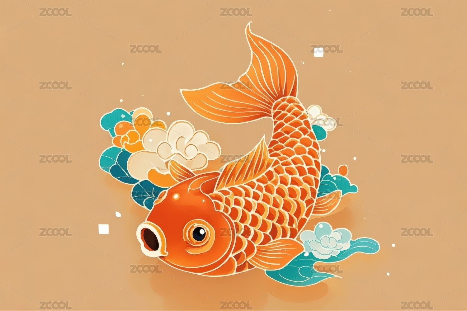 国潮风锦鲤金鱼插画