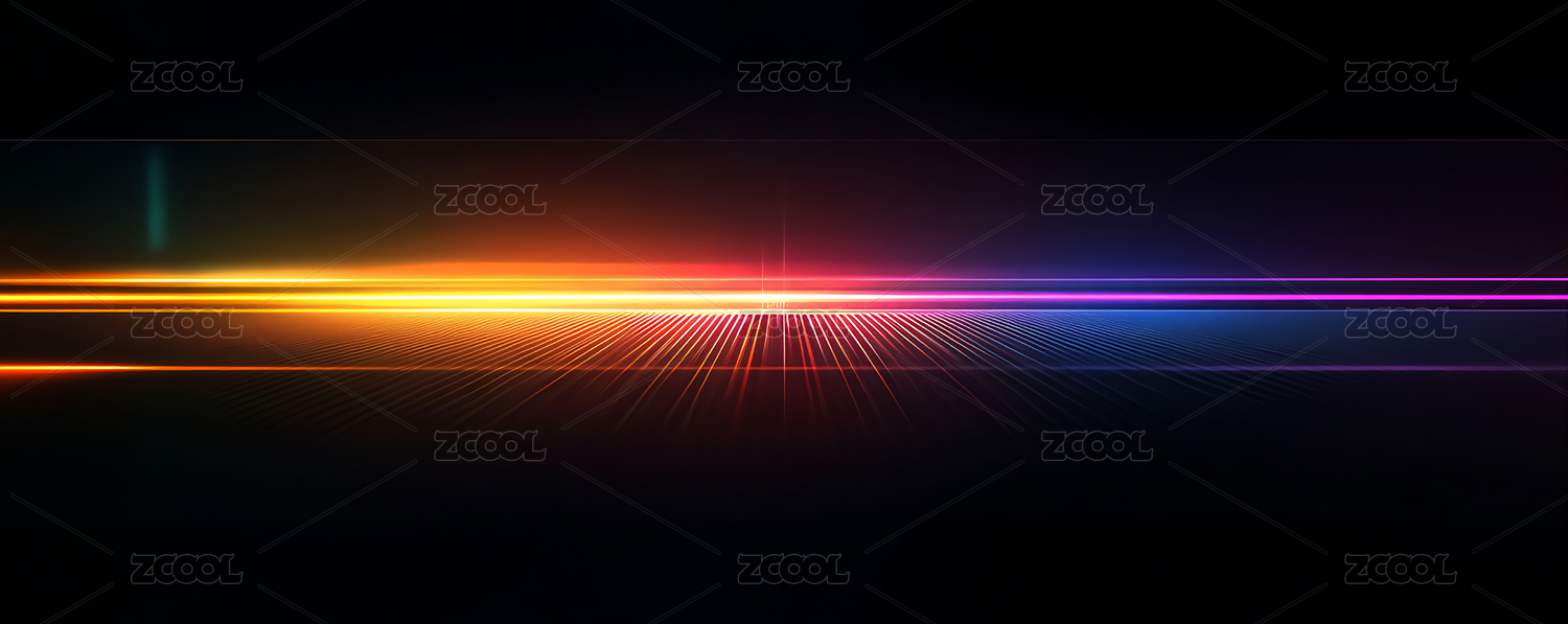 彩色光带在黑暗背景中延伸