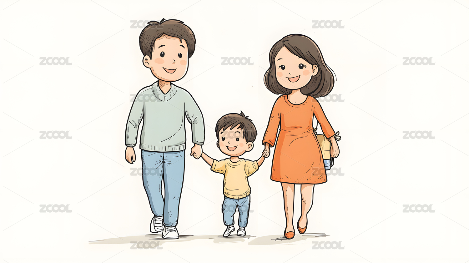 手绘卡通一家三口人物