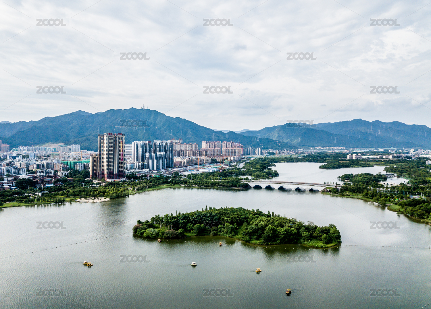 航拍云南昆明翠湖公园城市湖泊自然湿地风光