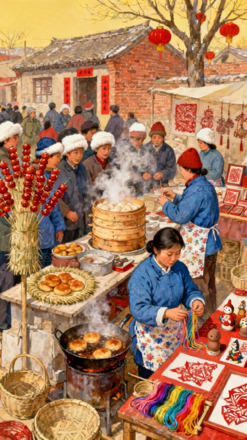 传统市集热闹场景