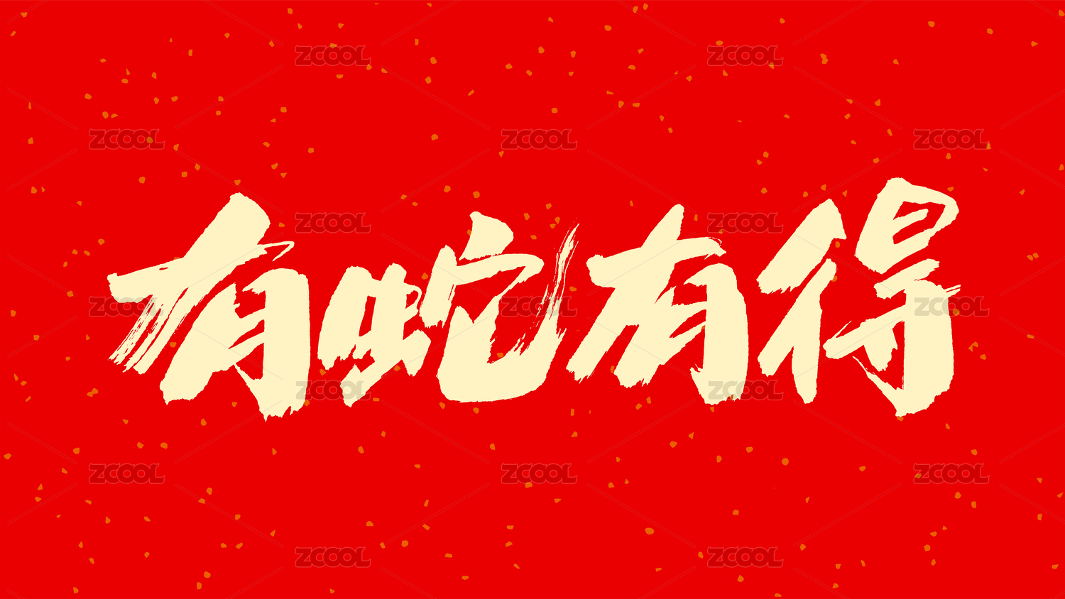 三维立体字蛇年春节吉祥语红色背景艺术字