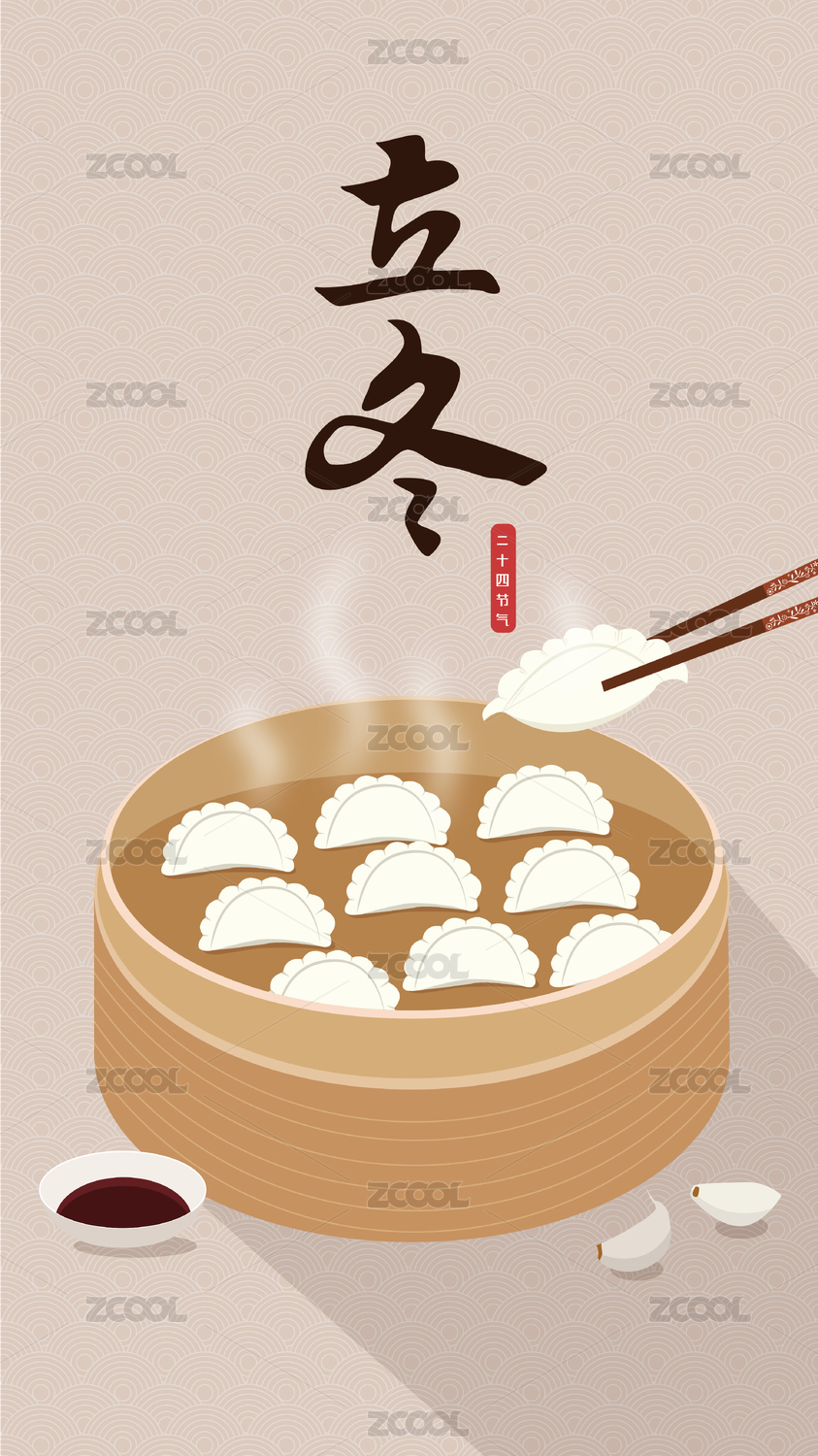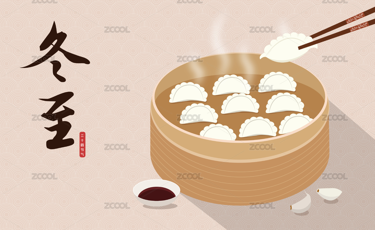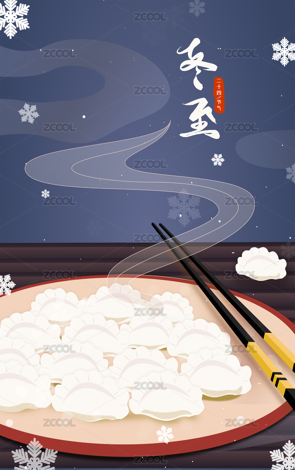 二十四节气冬至一盘水饺和筷子矢量海报素材