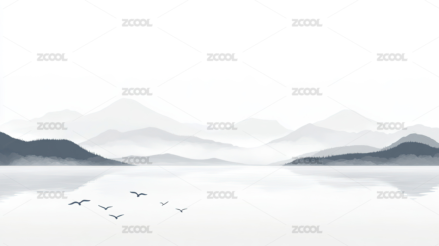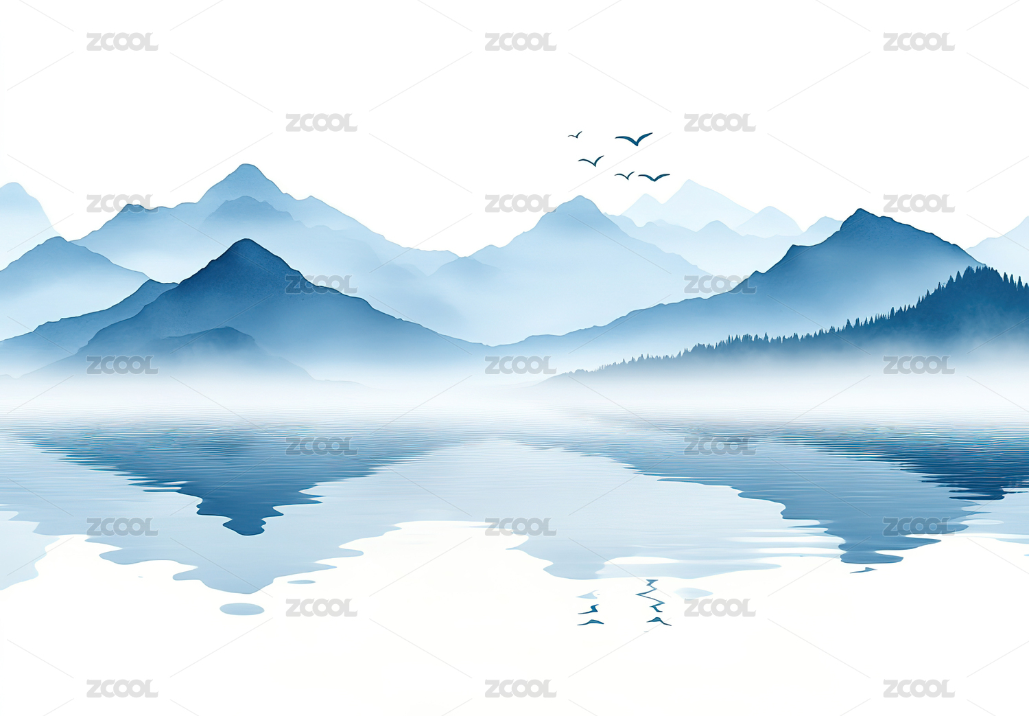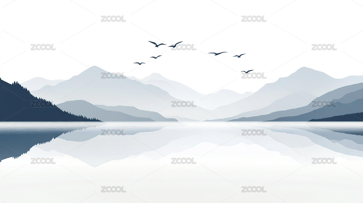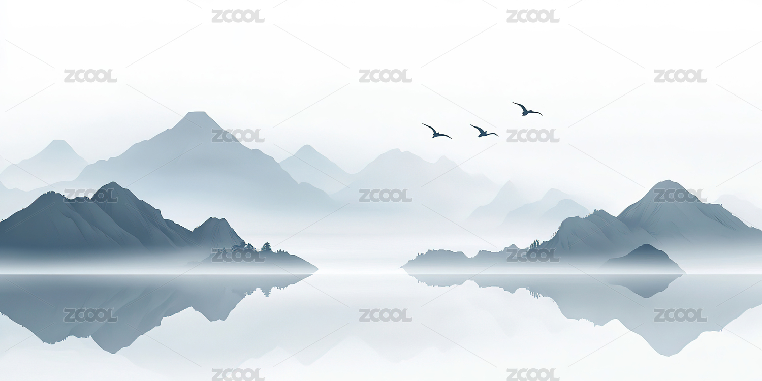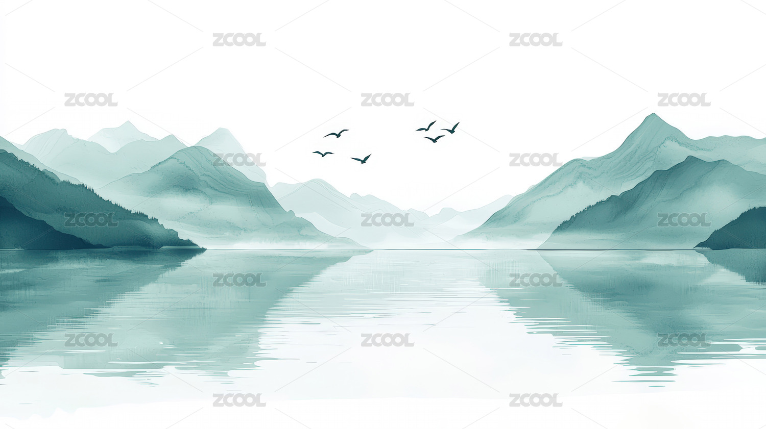 山,水,中国风,鸟,插画,概念,背景,壁纸,阁楼,写意