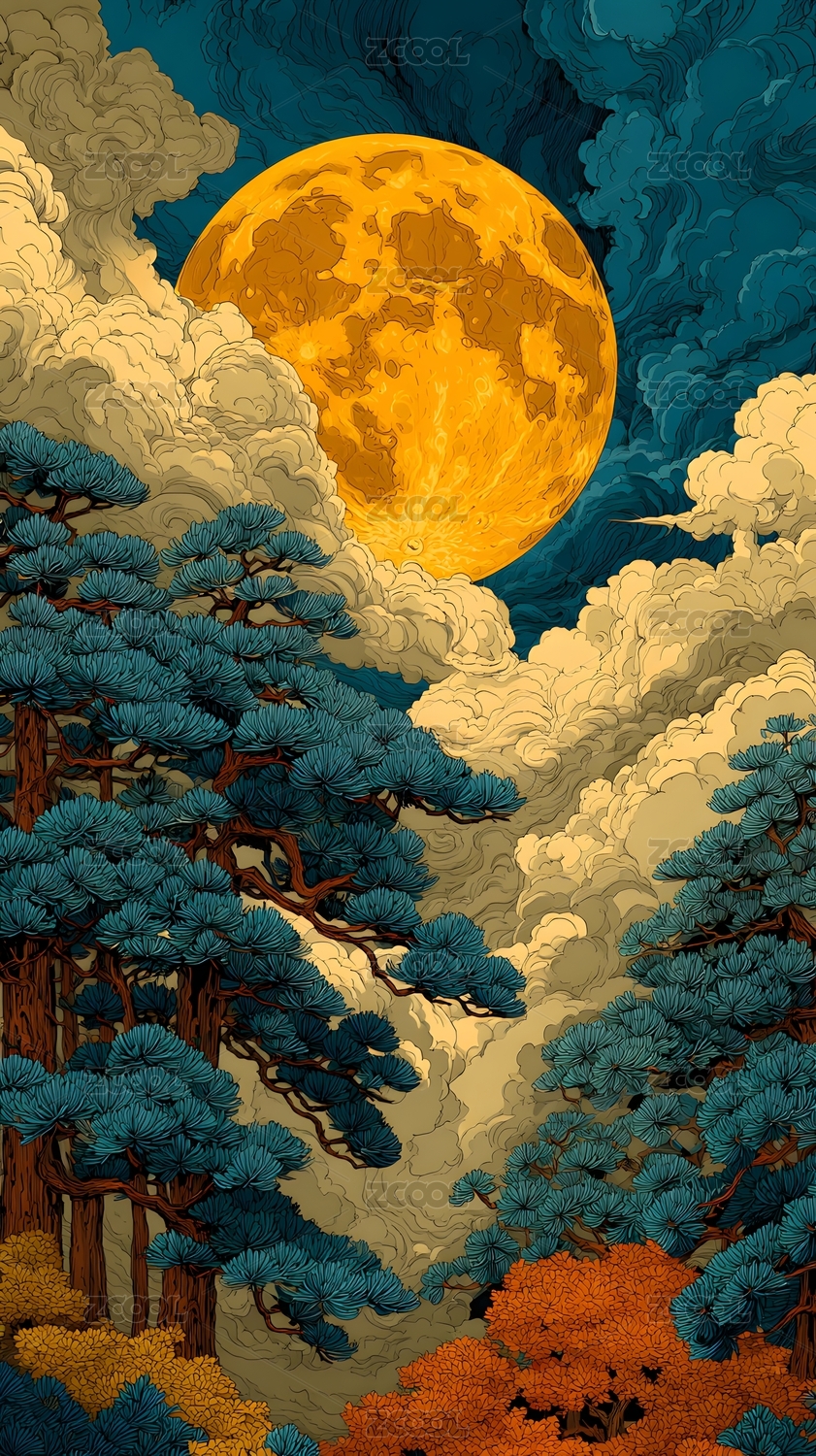 AIGC202403,传统,文化,中秋节,节日,插画,插图,风格,圆月,满月