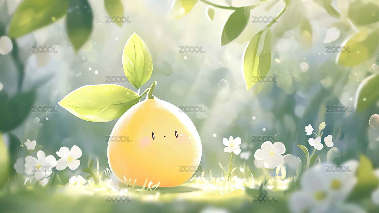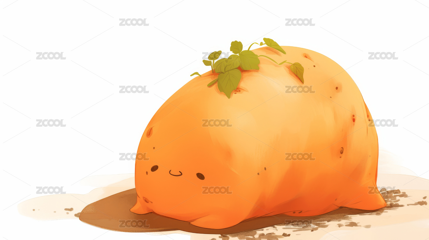 可爱,治愈,森林,卡通,绿色,童趣,植物,艺术,水彩,土豆