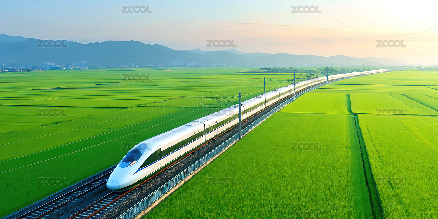 绿色田野里奔驰的高铁列车经济腾飞概念