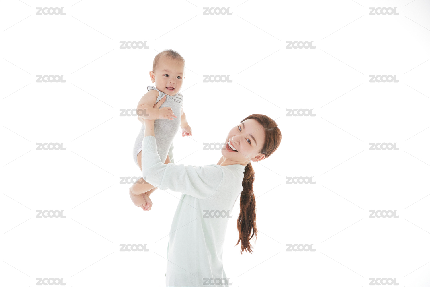 年轻妈妈抱着婴儿举高高