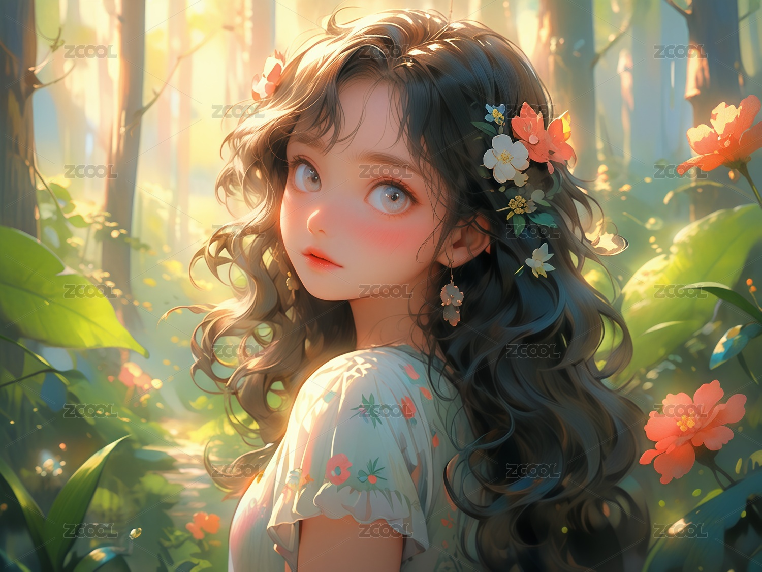 AIGC在森林中的神秘梦幻可爱美丽女生