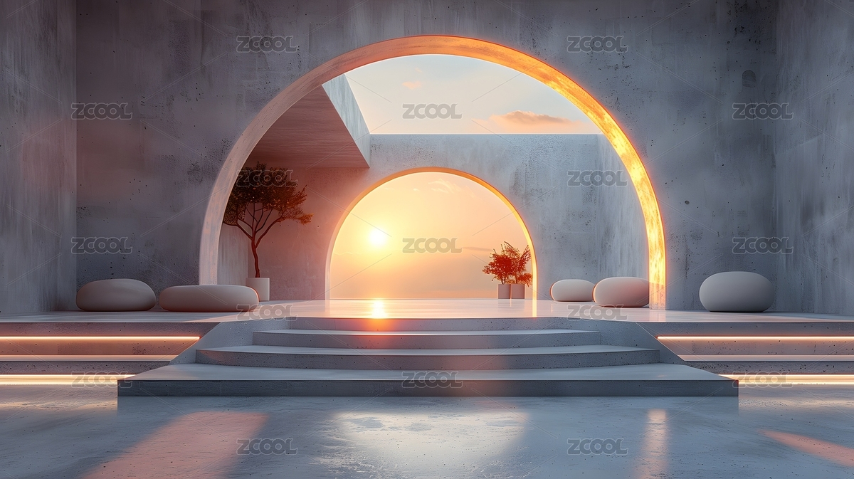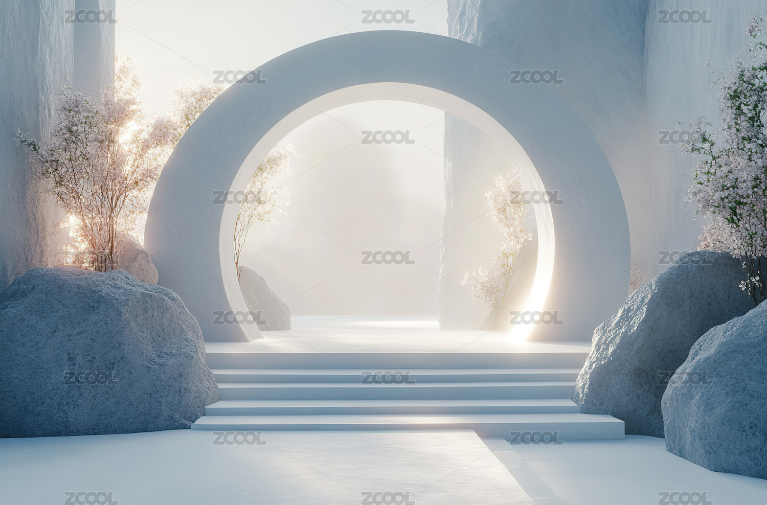 AIGC202401,简洁,线条,未来,3D,抽象,背景,留白,空间感,电商