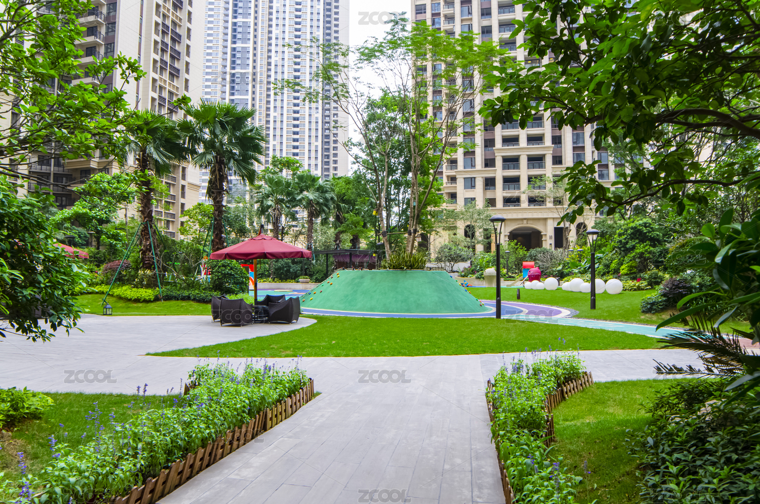 草坪,阳光,草,树,绿色,粉,草地,环境,小区,住宅