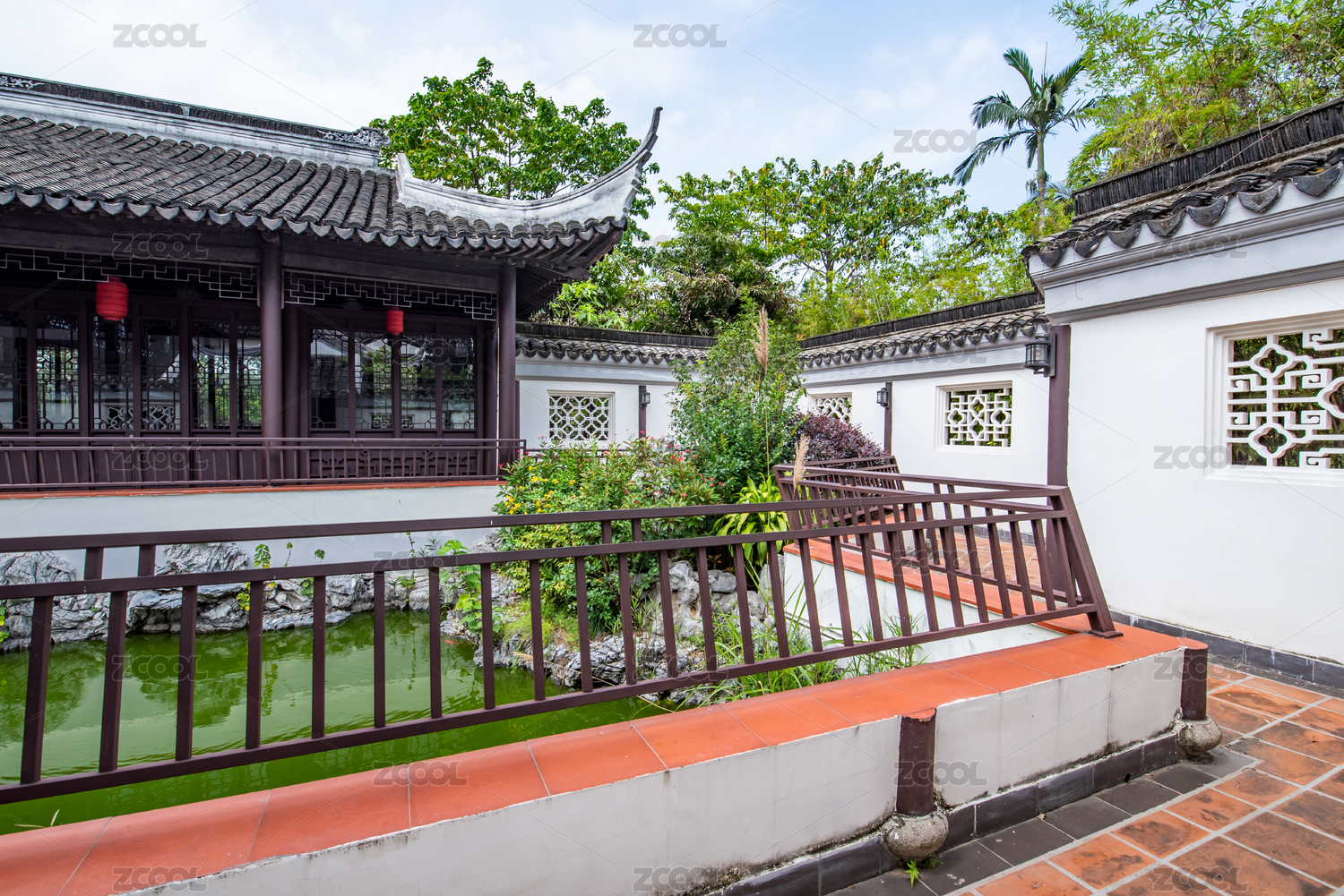 中国广州番禺余荫山房桥廊堤栏景观