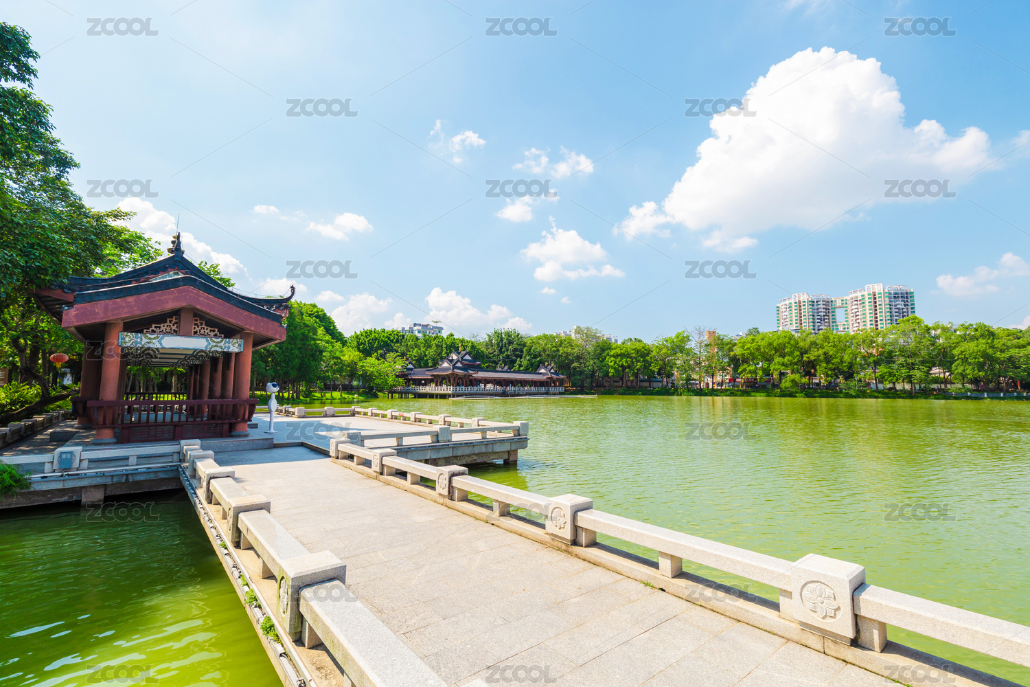 惠州丰湖 步行道及远处的泗州塔