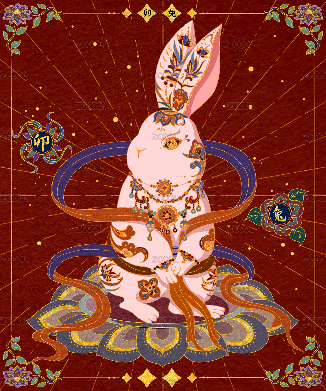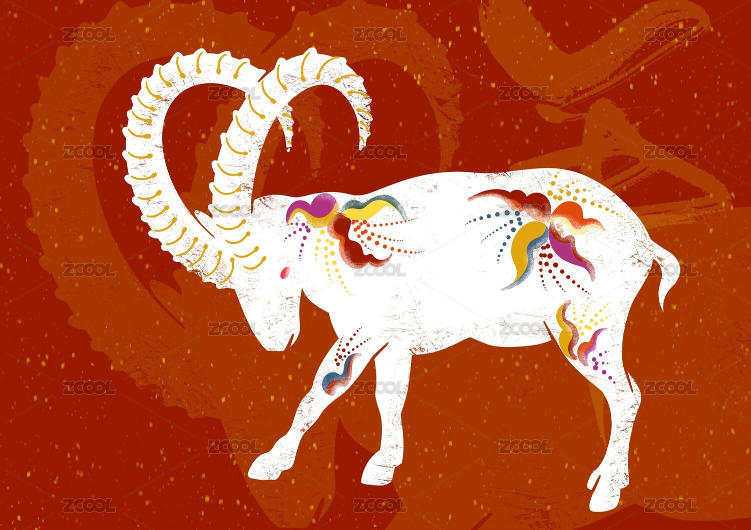 国潮风,敦煌,十二生肖,动物,红色,生肖,飞天,未羊,插画