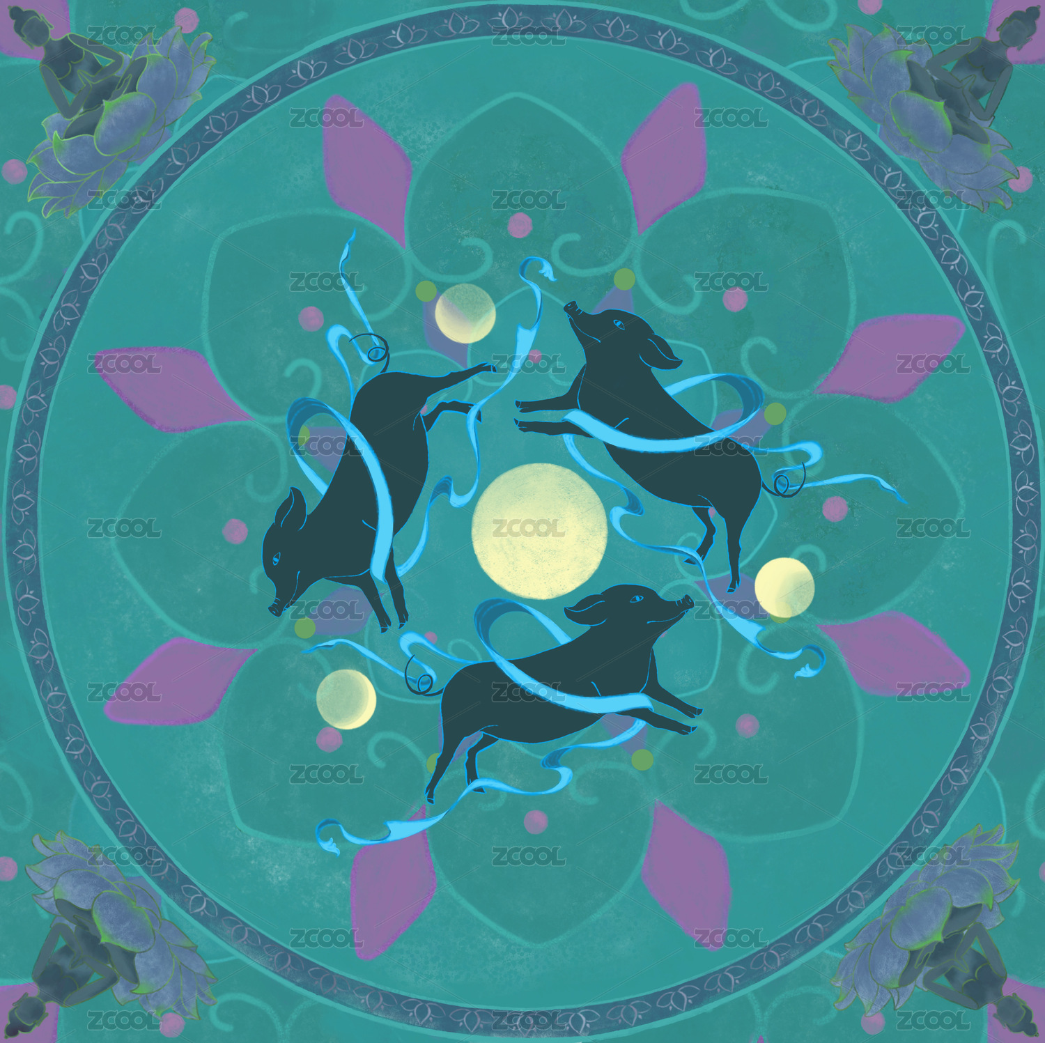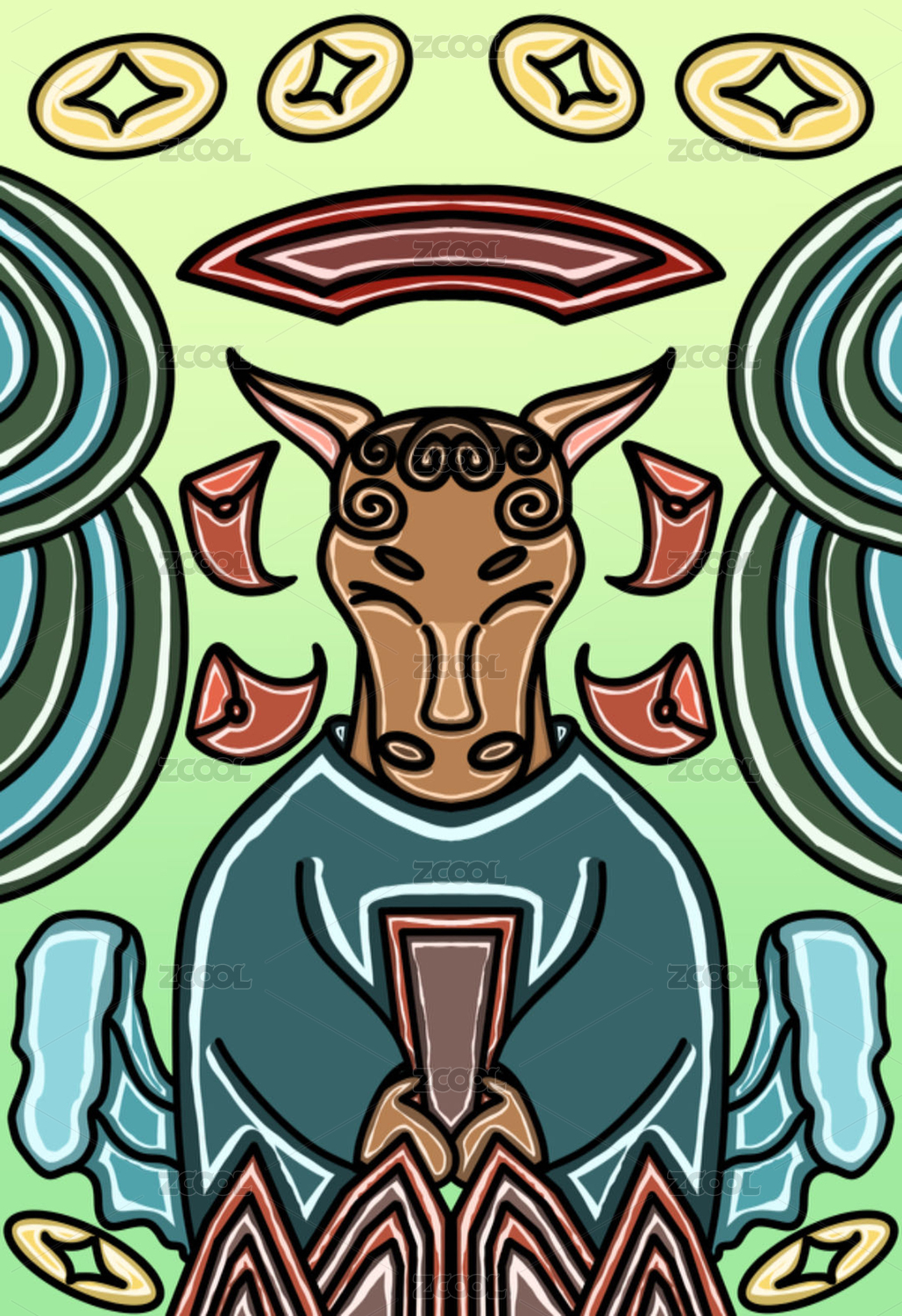 牛年生肖传统吉祥图符牛气冲天 蓝底弯角