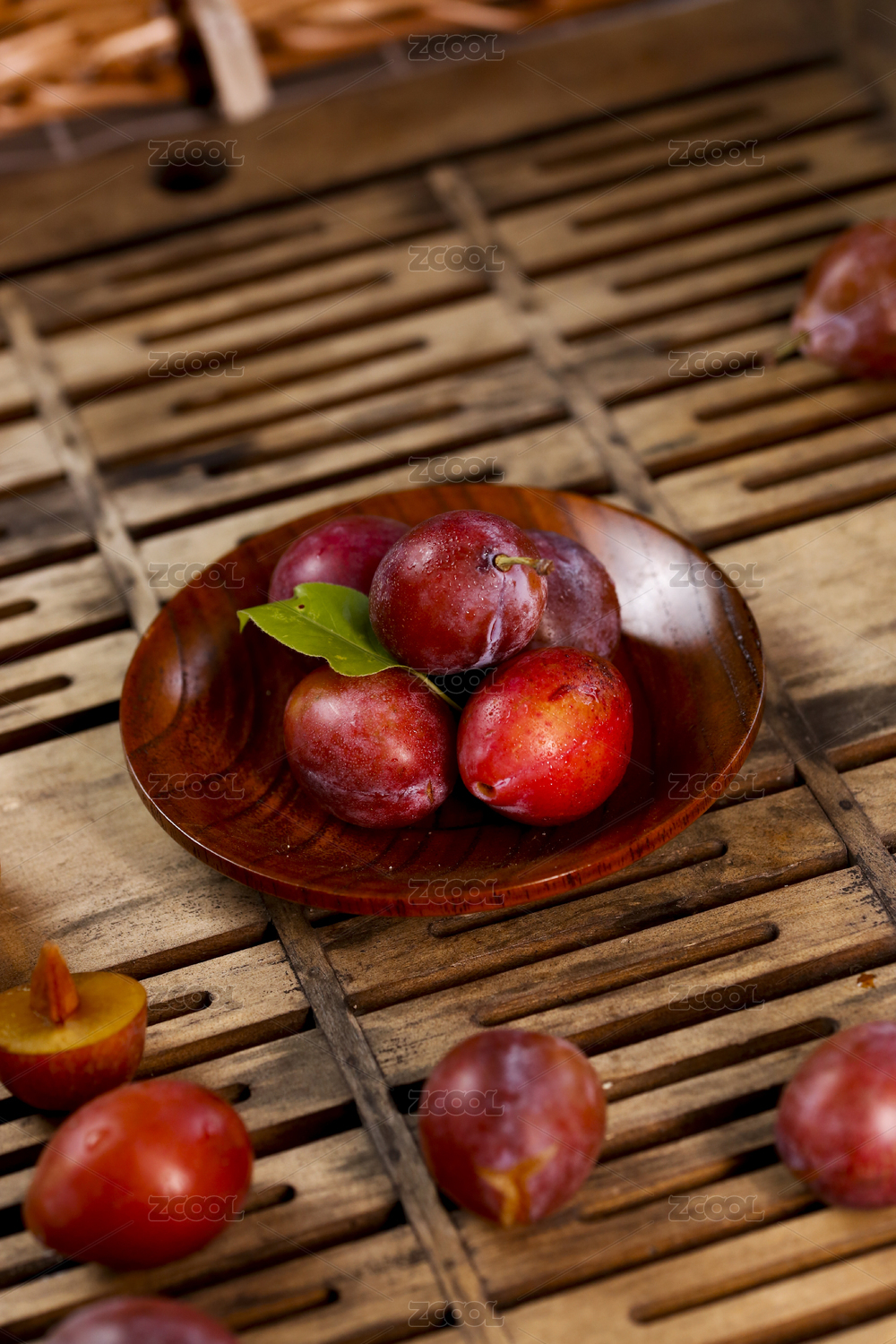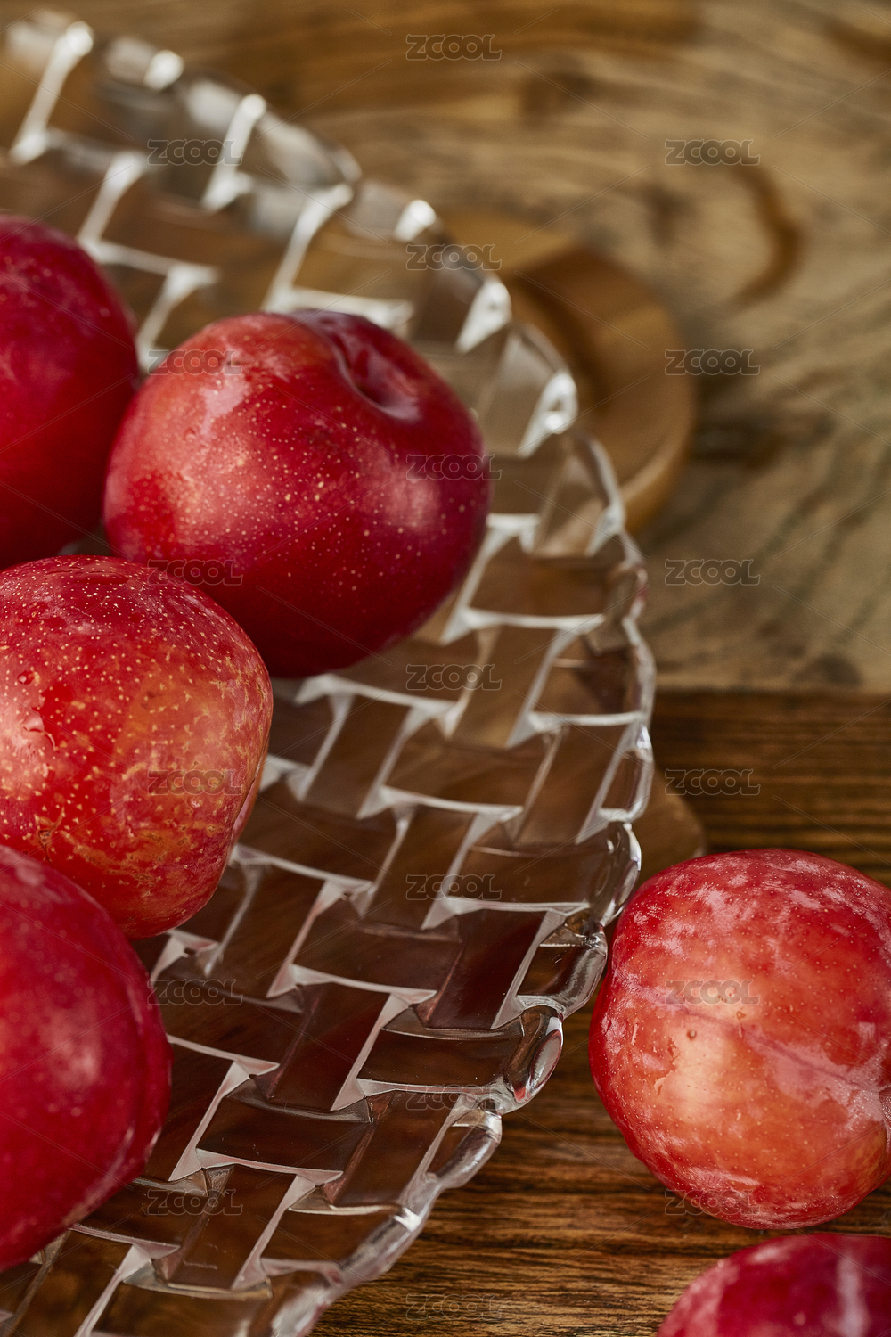 桌面上的白色陶瓷盘子里的新鲜樱桃