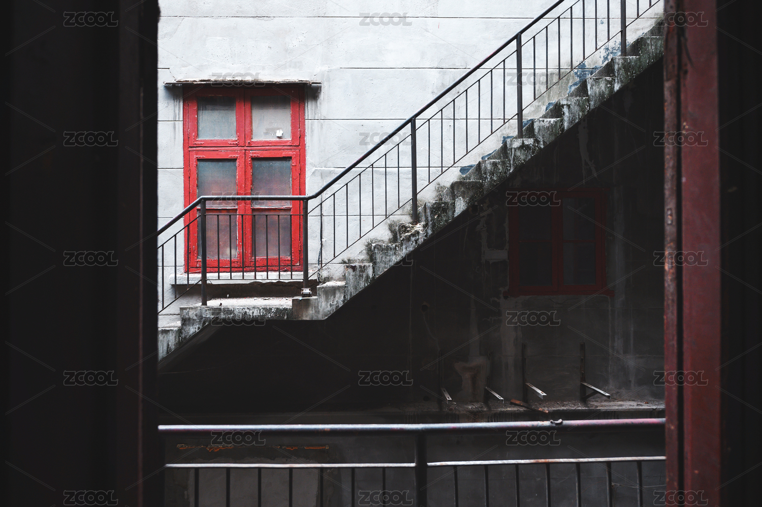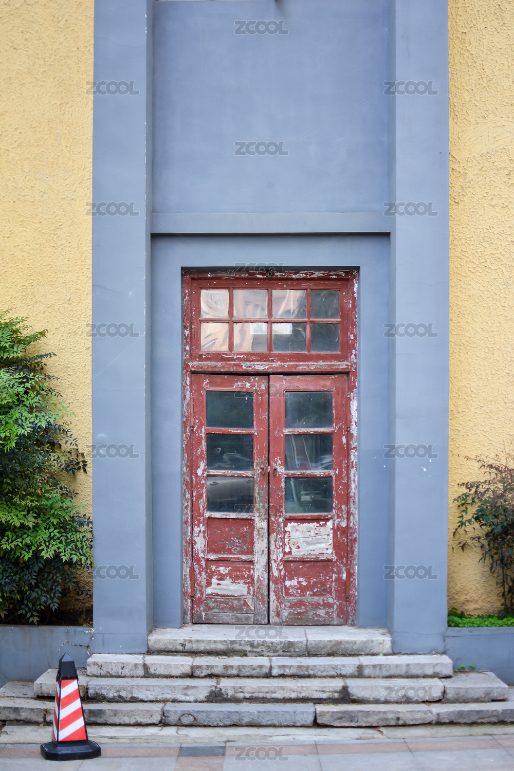 大楼一侧被关闭的破旧侧门