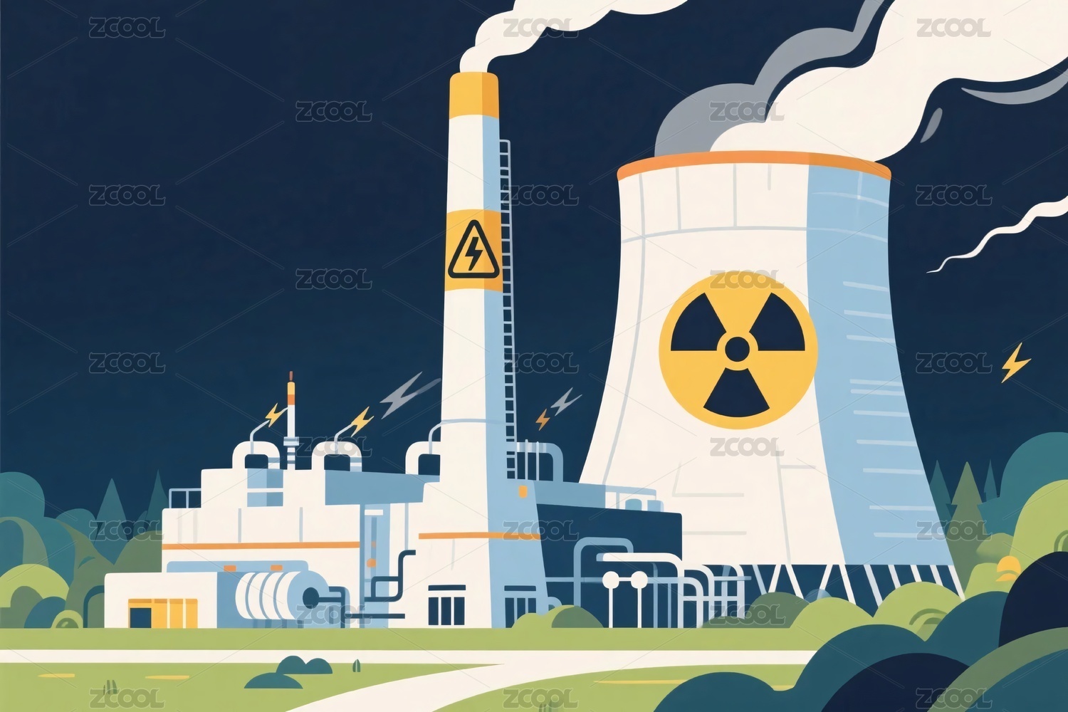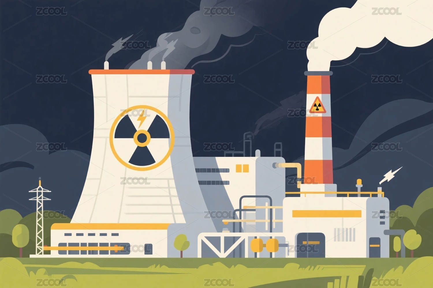 核电站工业插画