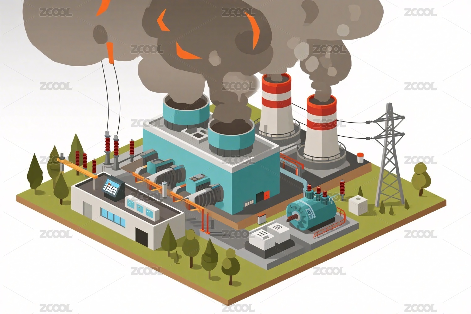 火力发电厂平面插画
