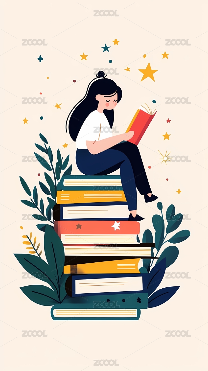 读书,阅读,看书,知识,插画,世界读书日,智慧,书店,教育,书
