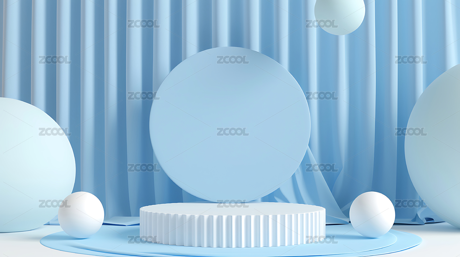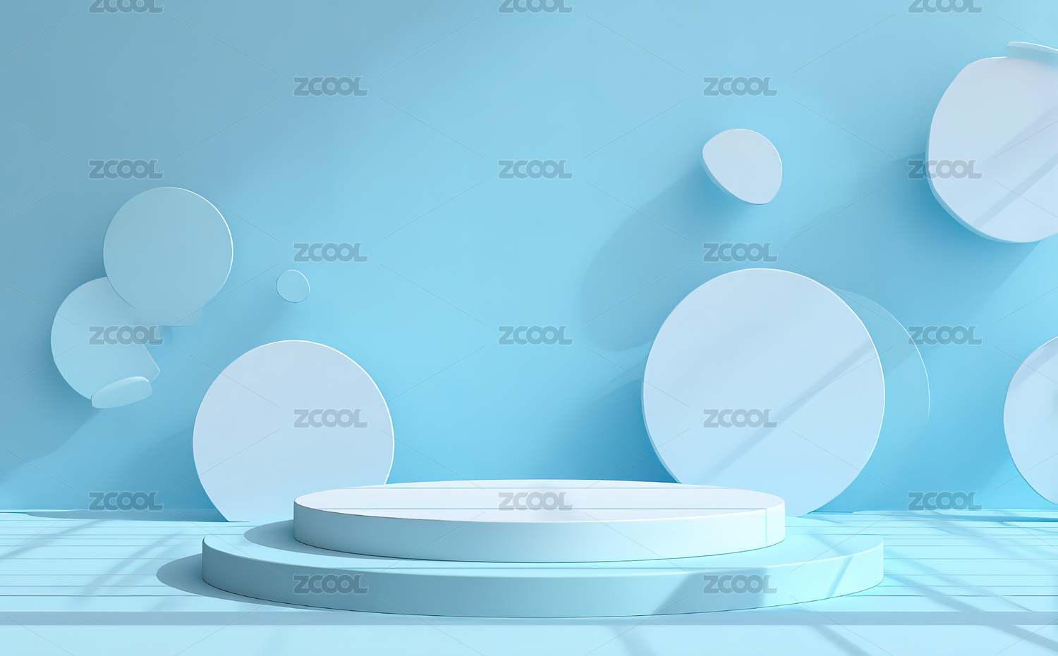 蓝色背景下的白色圆形展台