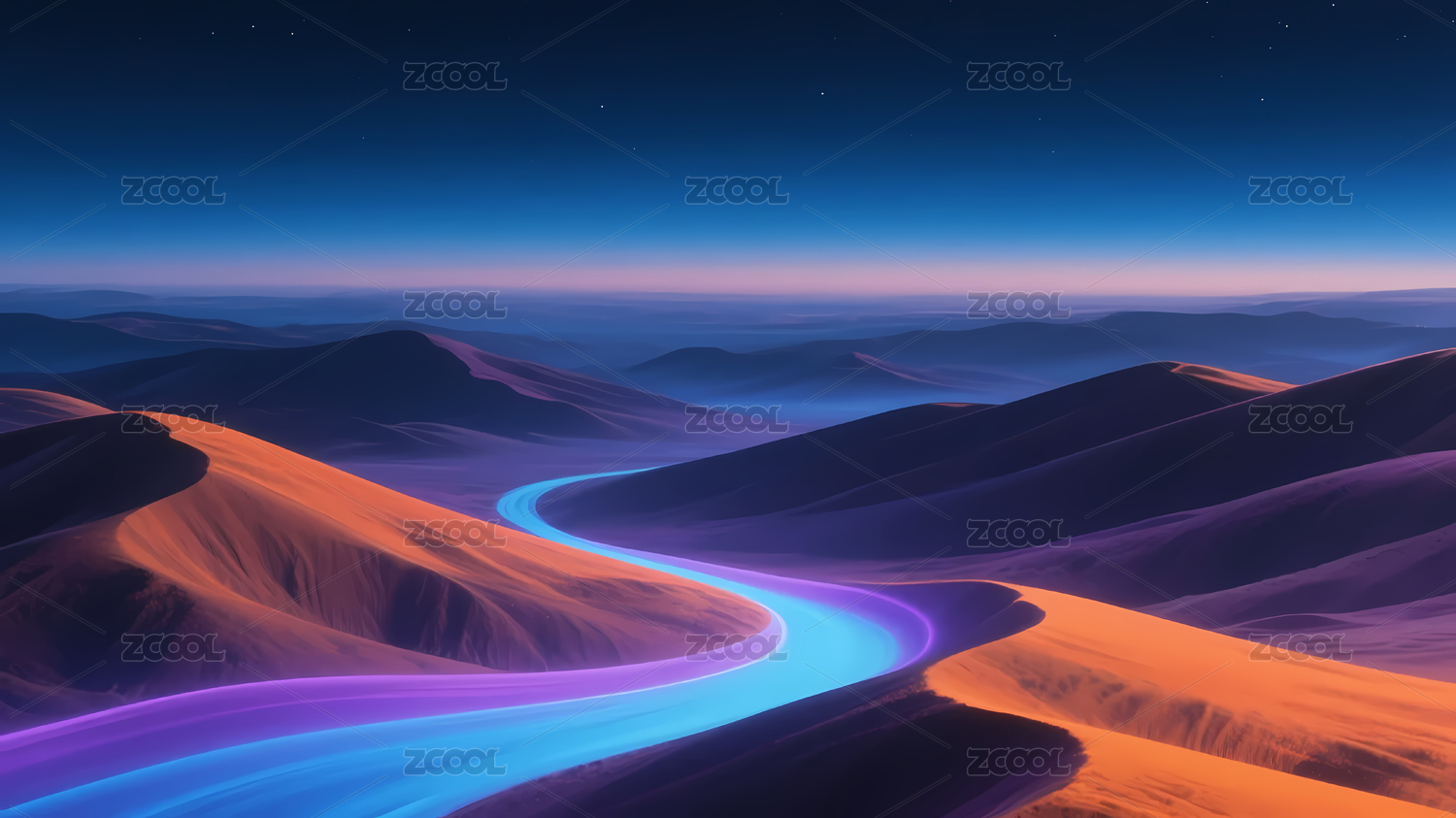 蓝色, 紫色, 山谷, 道路, 蜿蜒, 光线, 梦幻, 奇幻, 抽象, 背景