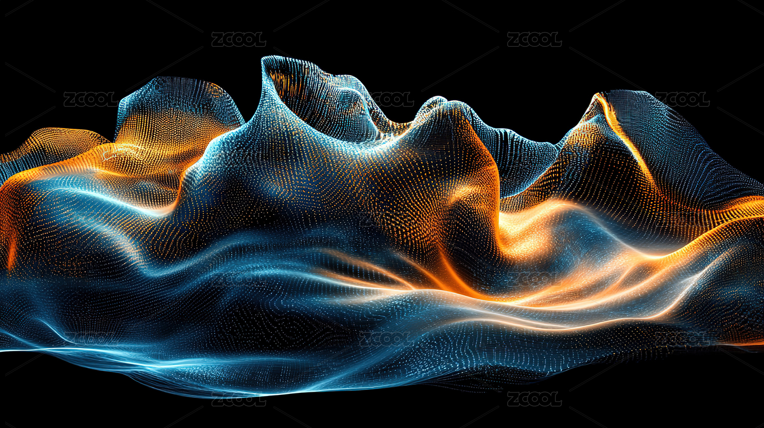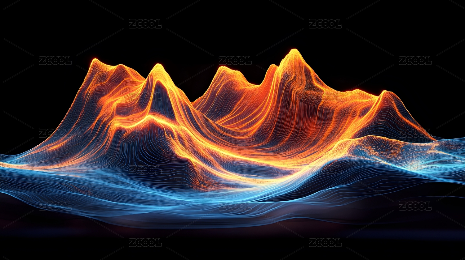 蓝色与橙色交织的抽象山脉