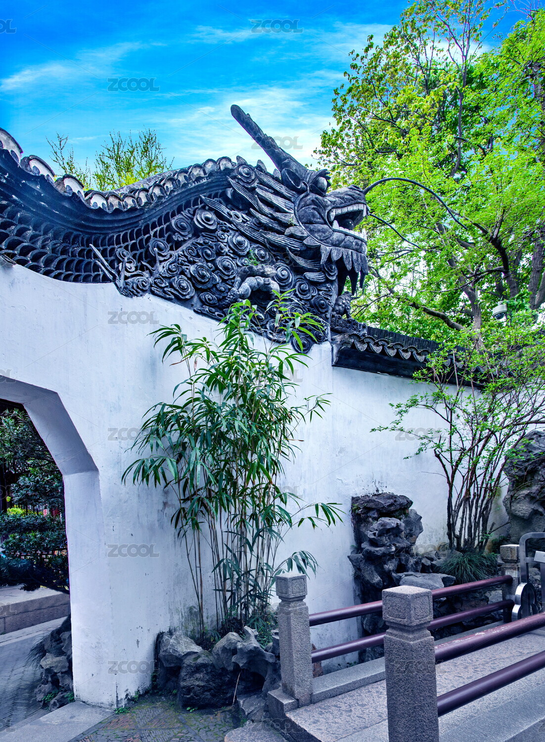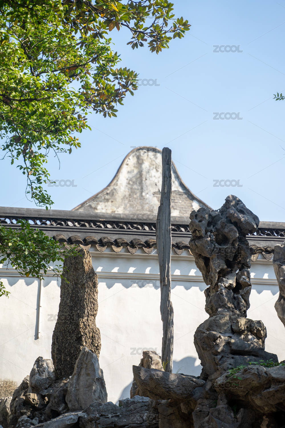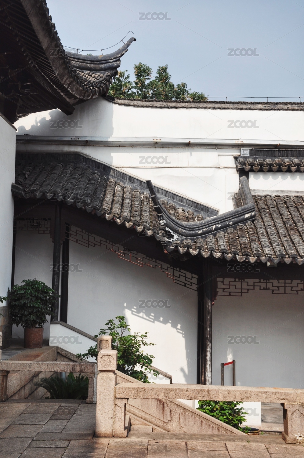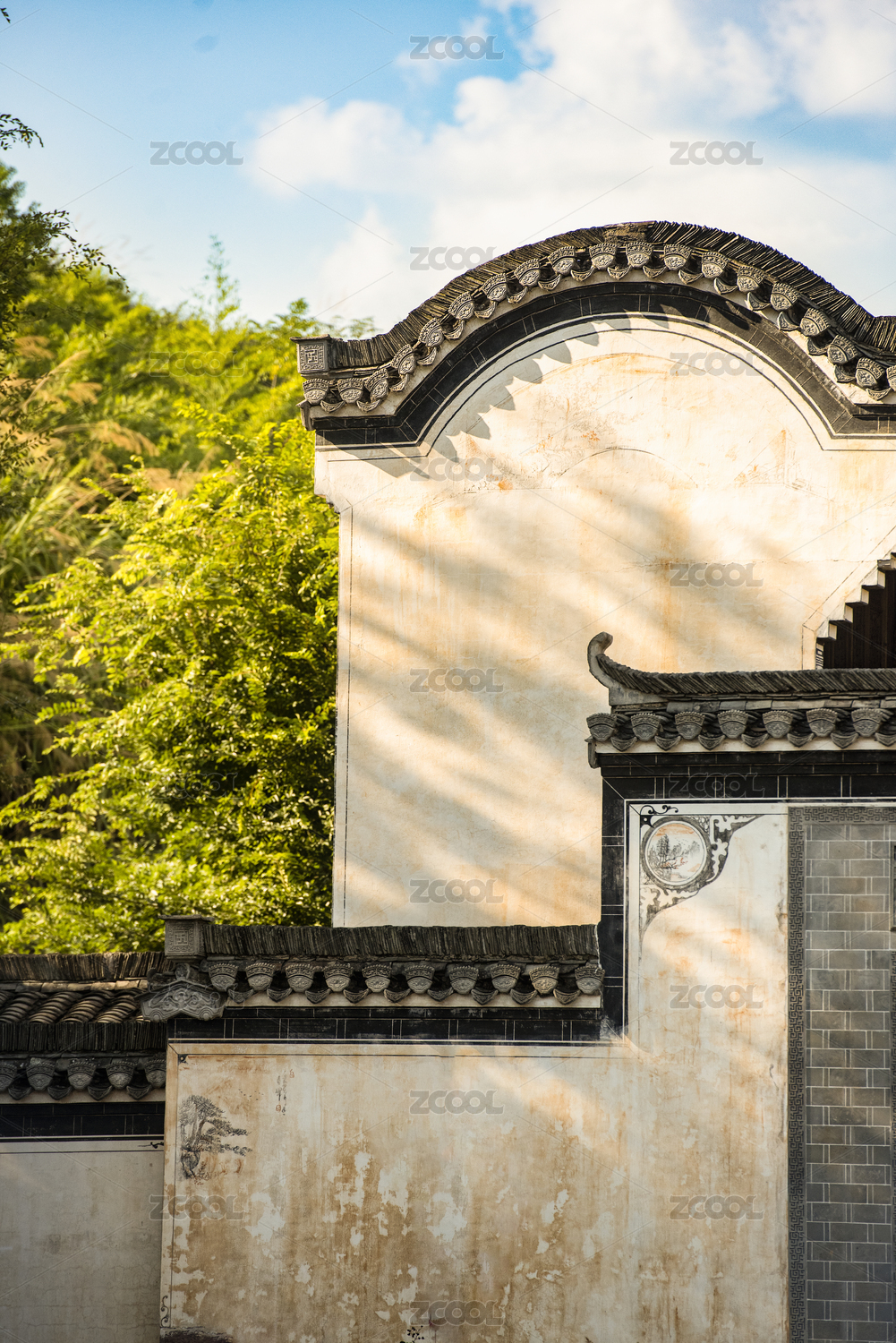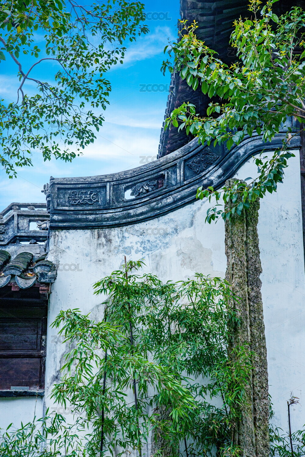 中式庭院,古色古香,古建筑,民居,飞檐,黛瓦,房檐,苏州园林,树林,自然
