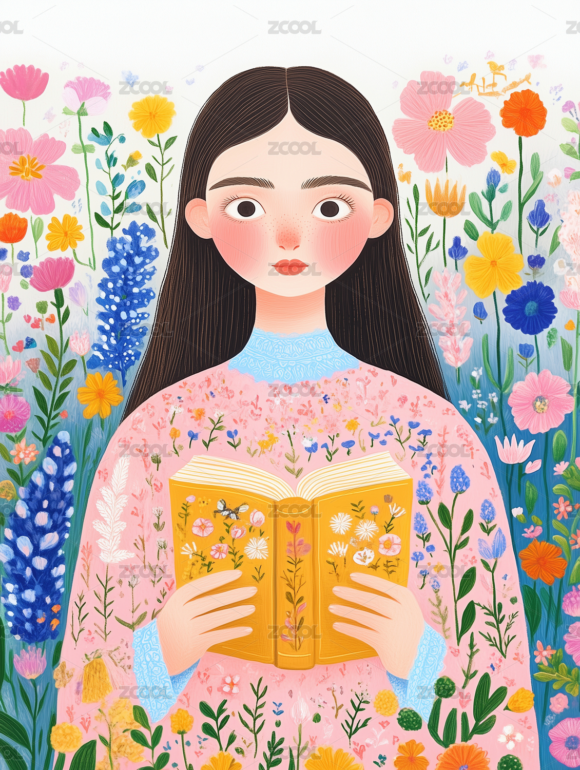 读书的女孩卡通插画