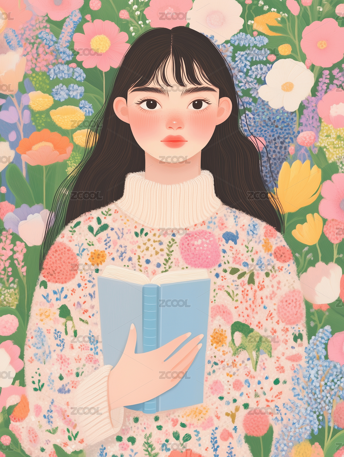 捧花少女插画